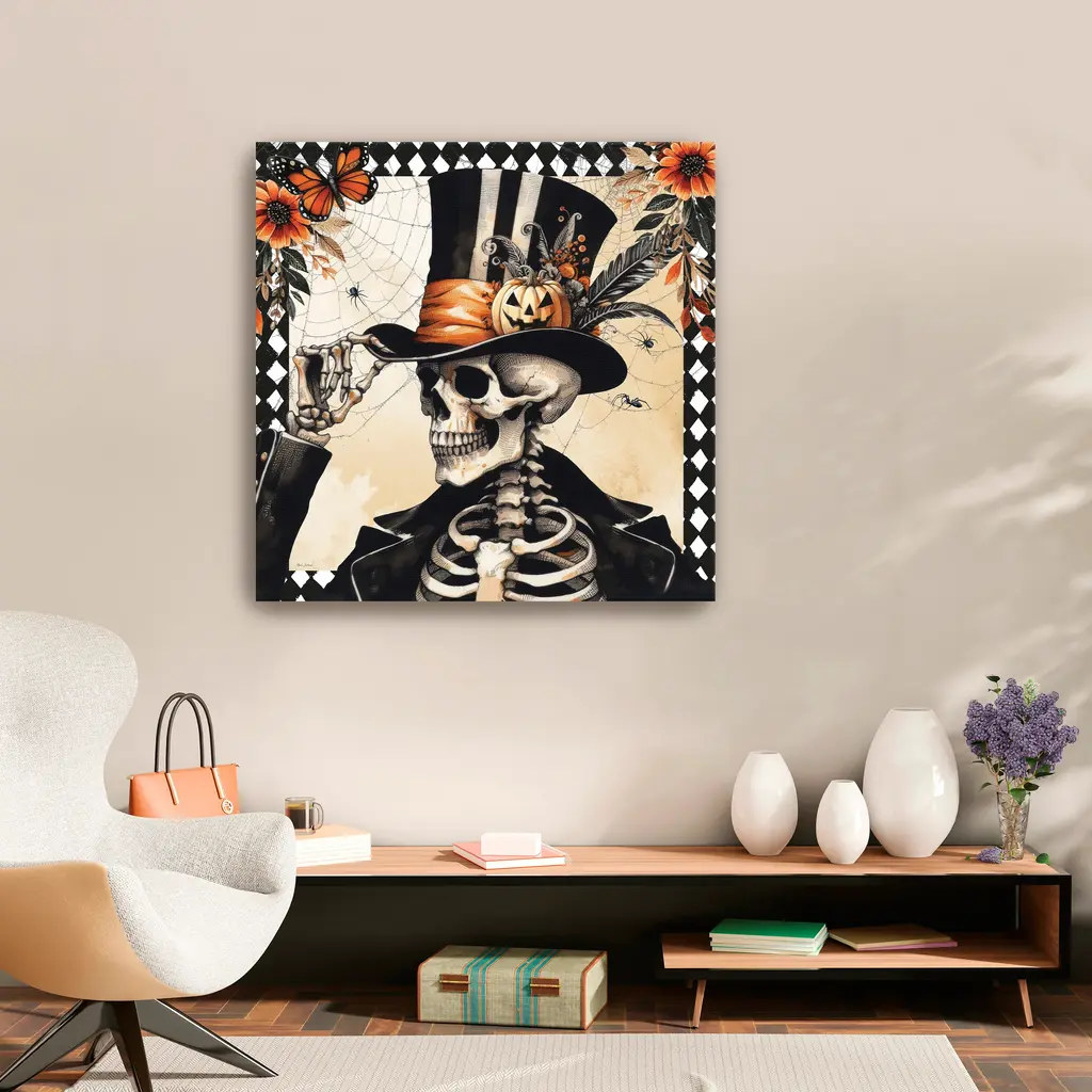 Vintage Halloween Skeleton Canvas Giclee - Wrapped Canvas / None / 40x40