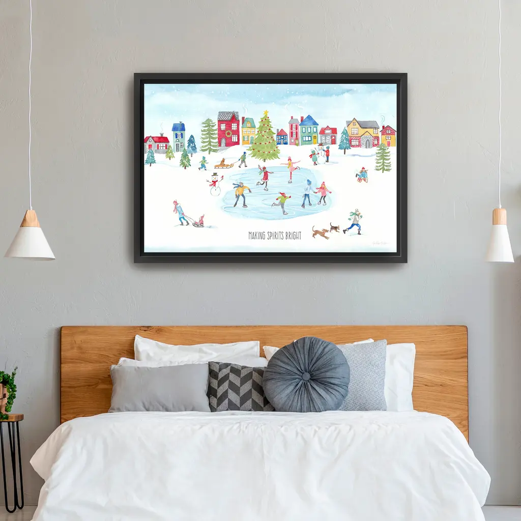 Vintage Holiday Cheer Landscape Canvas Giclee - Framed / Black / 32x48