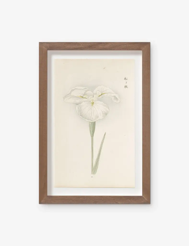 Visual Contrast is a Los Angeles-based fine art studio that produces limited-edition runs of high-quality wall art. This collection of iris paintings was painted by the Japanese botanist Miyoshi Manabu in 1921, offering a vintage touch to your wall decor. Each watercolor was painted on rice paper, adding to the delicate qualityframed in a modern walnut shadowbox and ready for any space from your home office to a bathroom or kitchen.