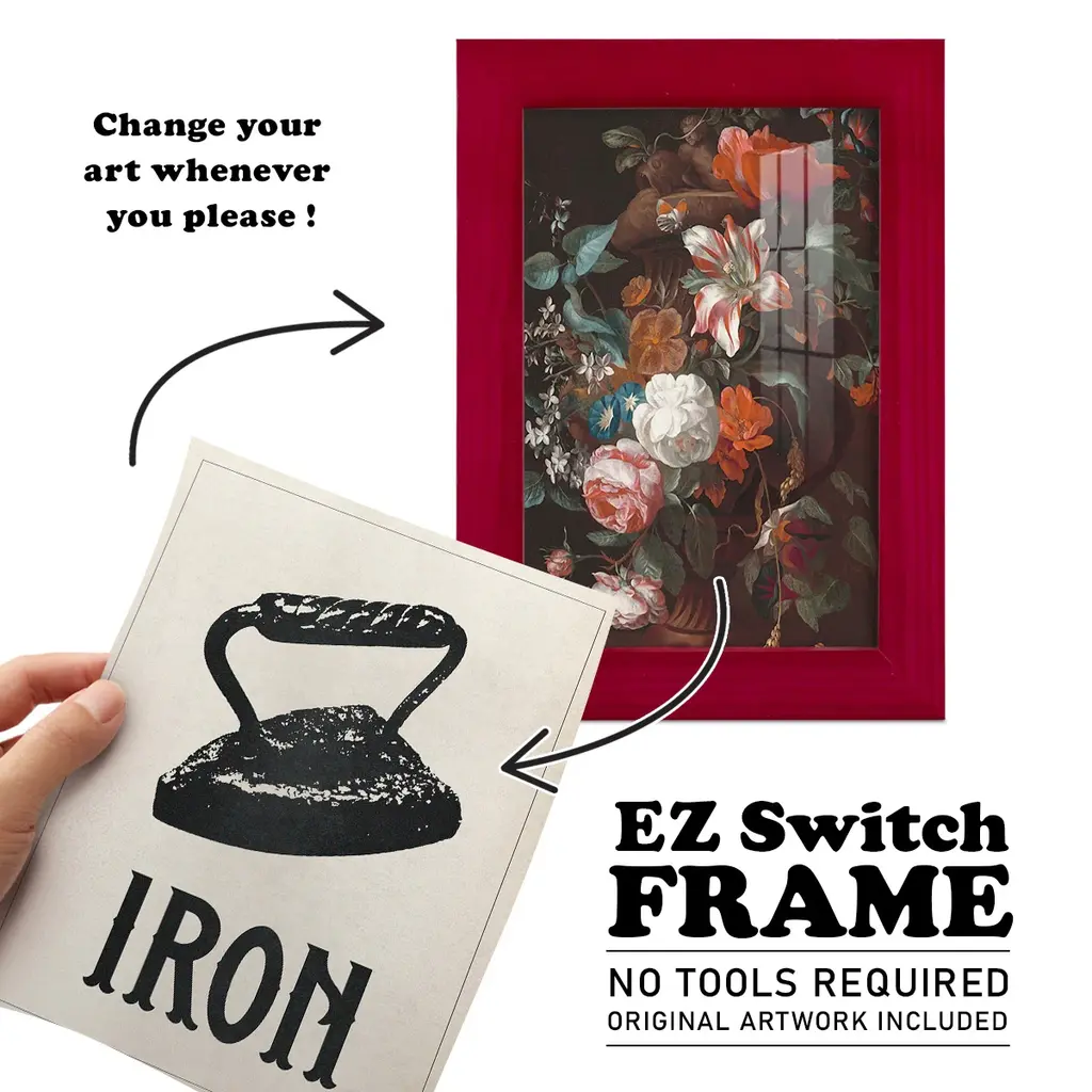 Vintage Laundry I -EZ SWITCH Framed Print w/glass-Cherry Red A delightful, framed print. Featuring a solid wood frame with real wood glass. This premium print is giclee quality. In addition, every frame features a removable back and table top stand. This allows you to change your art in the future or to just stand the art on a table for a new look. We are sure you'll enjoy our new series of EZ SWITCH Framed Art. Solid Wood Frame Real Glass Removable / Replaceable Art Built in Tabletop Stand Sizes range from 4x6 up to 12x15 - buy just one or pair them up as sets as you see fit.