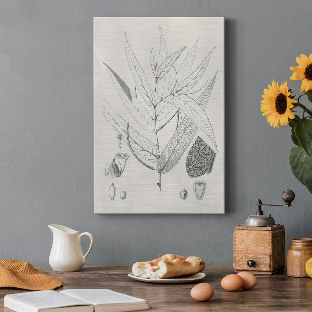 Vintage Leaves IV Premium Gallery Wrapped Canvas - Ready to Hang A premium hand stretched gallery wrapped canvas print created to last. Featuring a beveled a solid wood stretcher bar, each piece comes ready to hand 5 SIZES AVAILABLE 8''X12'' - Overall Size 16'X20'' - Overall Size 24''x32'' - Overall Size 30''x40'' - Overall Size 36''x48'' - Overall Size Each piece is made to order. Built to Last Each piece comes ready to hang Solid wood stretcher Fade and Water resistant Made domestically