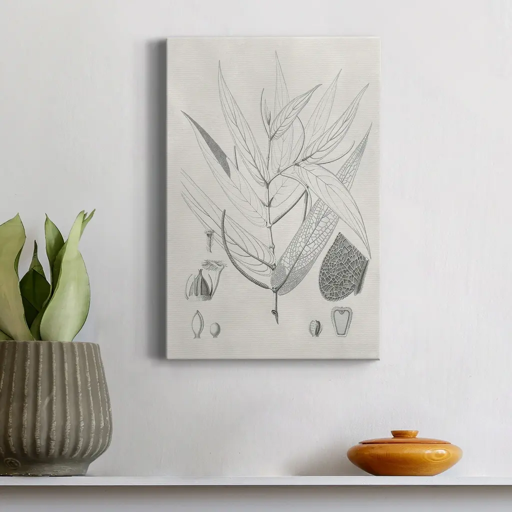 Vintage Leaves IV Premium Gallery Wrapped Canvas - Ready to Hang A premium hand stretched gallery wrapped canvas print created to last. Featuring a beveled a solid wood stretcher bar, each piece comes ready to hand 5 SIZES AVAILABLE 8''X12'' - Overall Size 16'X20'' - Overall Size 24''x32'' - Overall Size 30''x40'' - Overall Size 36''x48'' - Overall Size Each piece is made to order. Built to Last Each piece comes ready to hang Solid wood stretcher Fade and Water resistant Made domestically