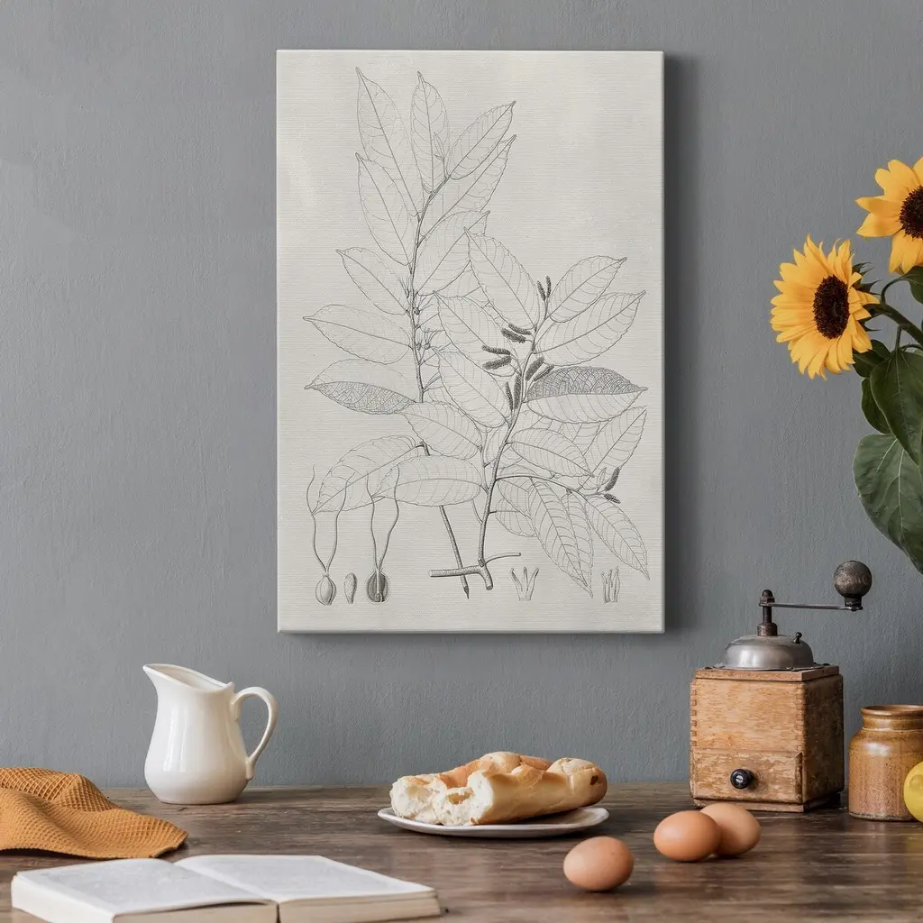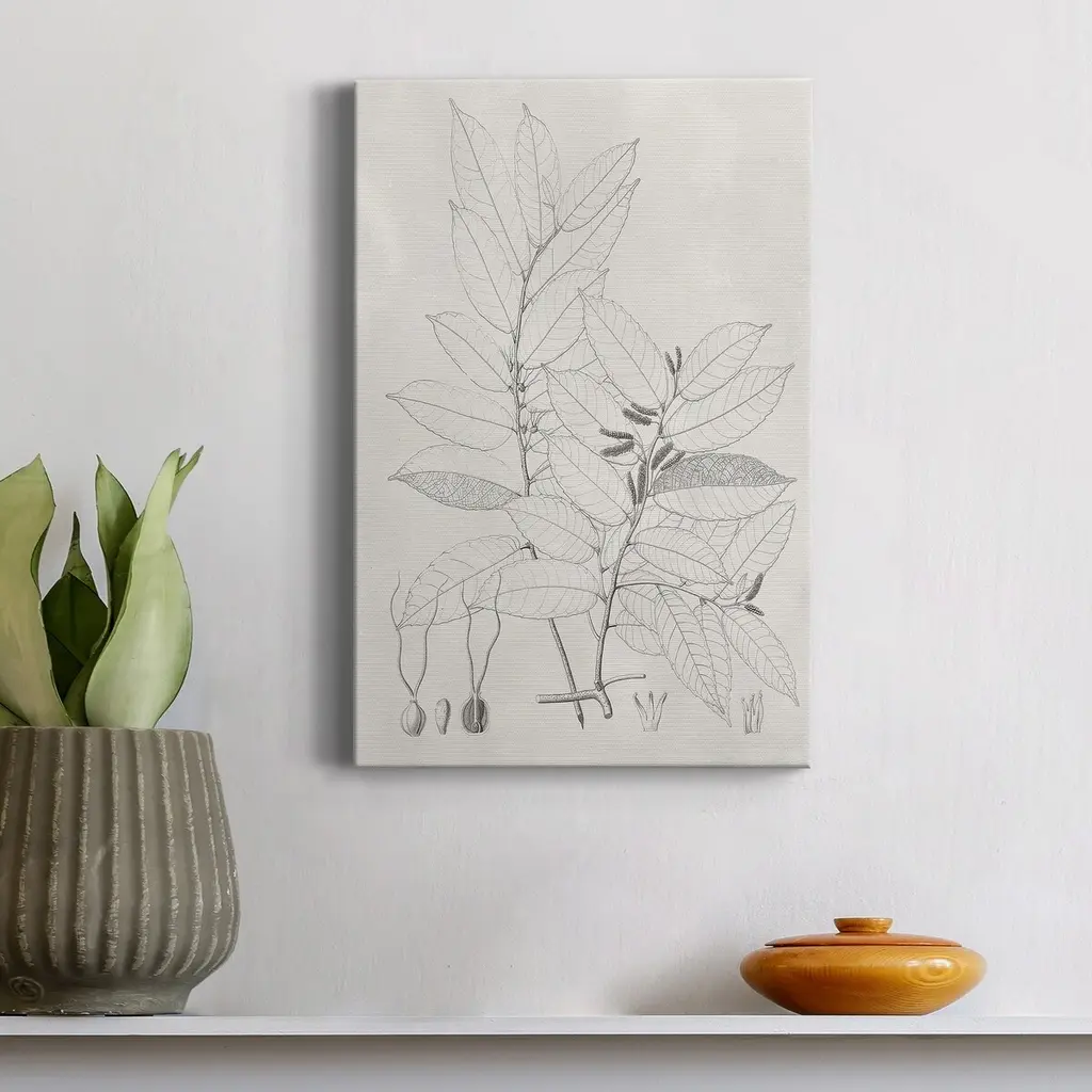 Vintage Leaves VI Premium Gallery Wrapped Canvas - Ready to Hang A premium hand stretched gallery wrapped canvas print created to last. Featuring a beveled a solid wood stretcher bar, each piece comes ready to hand 5 SIZES AVAILABLE 8''X12'' - Overall Size 16'X20'' - Overall Size 24''x32'' - Overall Size 30''x40'' - Overall Size 36''x48'' - Overall Size Each piece is made to order. Built to Last Each piece comes ready to hang Solid wood stretcher Fade and Water resistant Made domestically