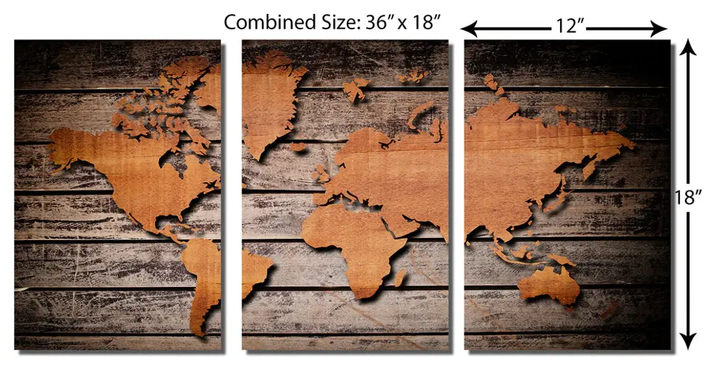 "Vintage Map With Wooden Floor" Metal Wall Art, 3 Panels, 36"x28"