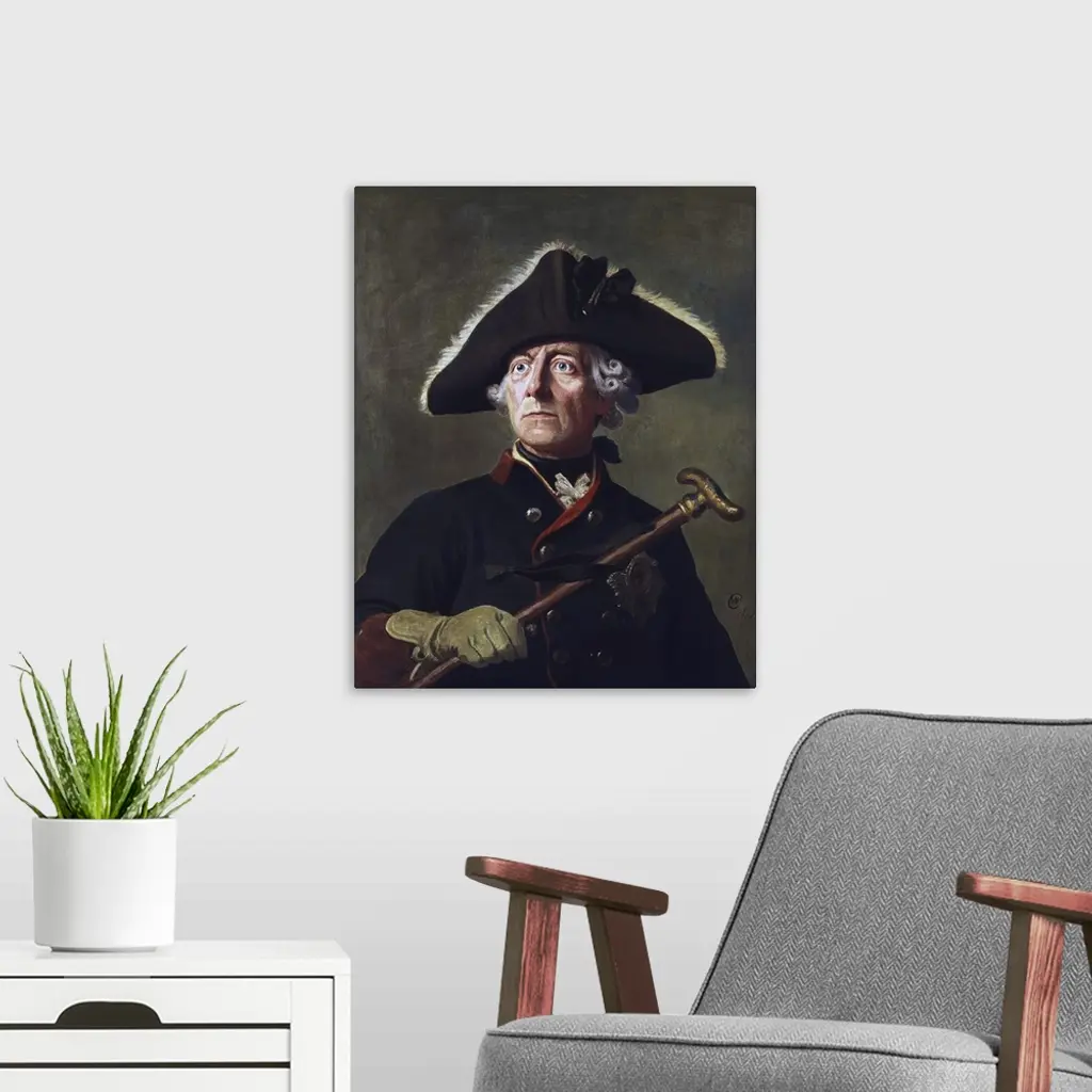 Vintage painting of Frederick the Great. Frederick II was the King of Prussia from 1740 until 1786. Original painted by Wilhelm Camphausen, 1870.