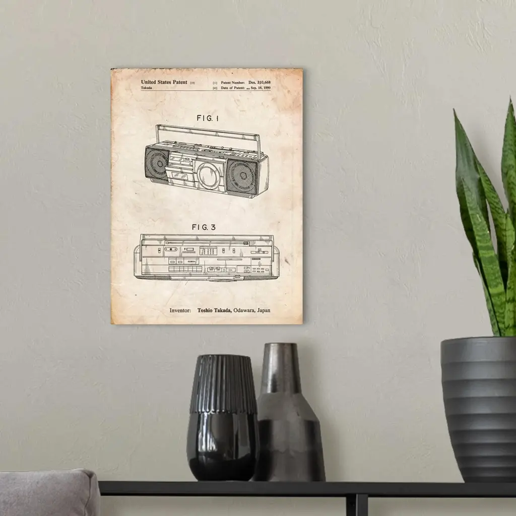 Vintage Parchment Boom Box Patent Poster wall art for home and office decor. Discover canvas art prints, photos, mural, big canvas art and framed wall art in GreatBigCanvas.com's varied collections.