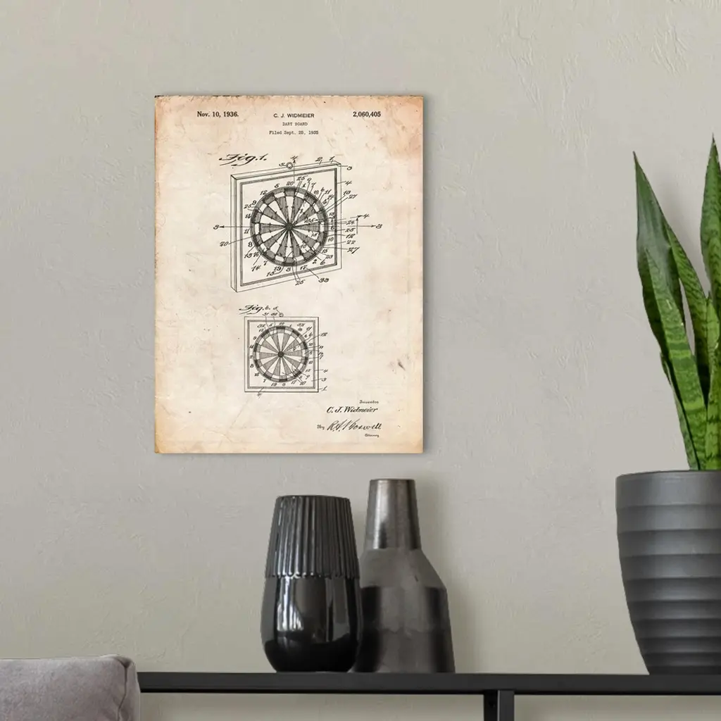 Vintage Parchment Dart Board 1936 Patent Poster wall art for home and office decor. Discover canvas art prints, photos, mural, big canvas art and framed wall art in GreatBigCanvas.com's varied collections.