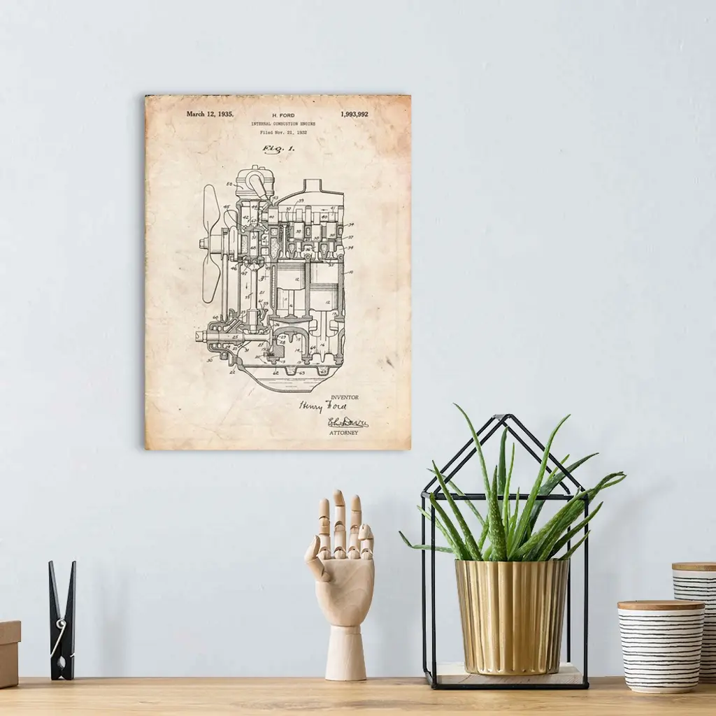 Vintage Parchment Ford Internal Combustion Engine Patent Poster wall art for home and office decor. Discover canvas art prints, photos, mural, big canvas art and framed wall art in GreatBigCanvas.com's varied collections.