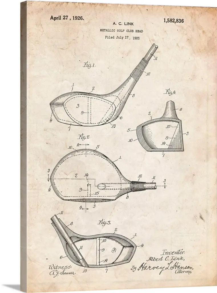 Vintage Parchment Golf Club Head Patent Poster wall art for home and office decor. Discover canvas art prints, photos, mural, big canvas art and framed wall art in GreatBigCanvas.com's varied collections.