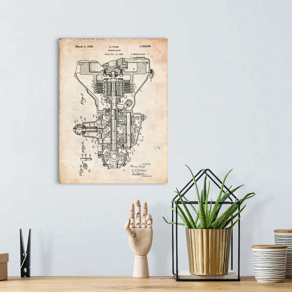 Vintage Parchment Henry Ford Transmission Patent Poster wall art for home and office decor. Discover canvas art prints, photos, mural, big canvas art and framed wall art in GreatBigCanvas.com's varied collections.