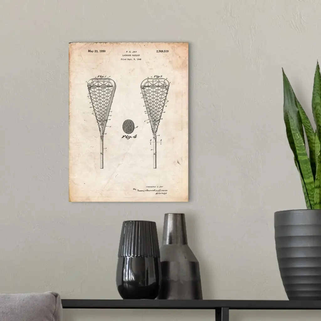 Vintage Parchment Lacrosse Stick 1948 Patent Poster wall art for home and office decor. Discover canvas art prints, photos, mural, big canvas art and framed wall art in GreatBigCanvas.com's varied collections.