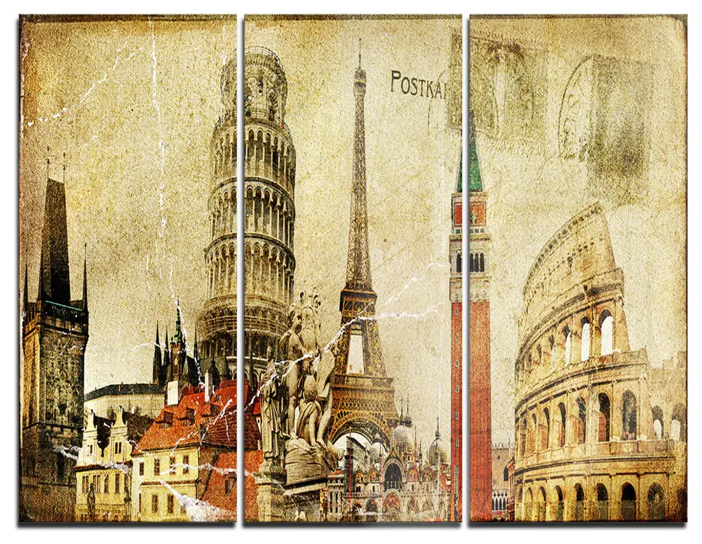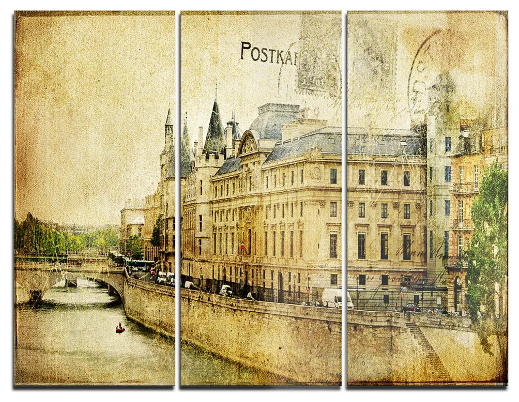 "Vintage Paris" Digital Metal Wall Art, 3 Panels, 36"x28"