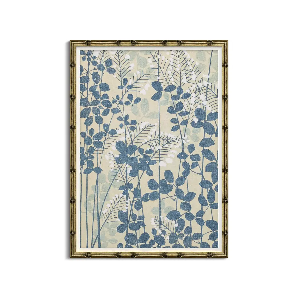 This reproduction of a vintage floral pattern is printed on deckled matte paper, floated over a white mat, and displayed in a silver-leaf-finished frame. Arrives ready to hang.