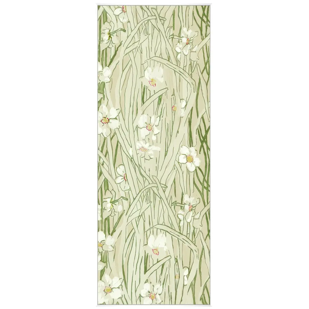 This reproduction of a vintage floral pattern is printed on deckled matte paper, floated over a white mat, and displayed in a silver-leaf-finished frame. Arrives ready to hang.