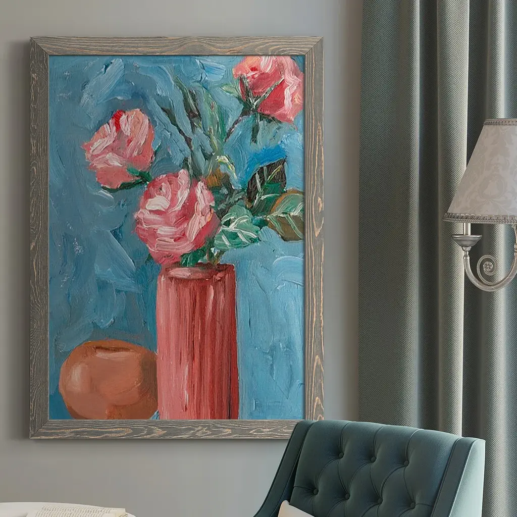 Vintage Peonies Still Life Framed Canvas Wall Art