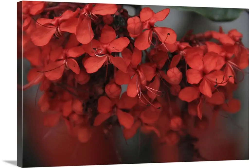 Vintage Photo Of Cute Red Flowers, Large Floral Canvas Art Print, 60"x28"