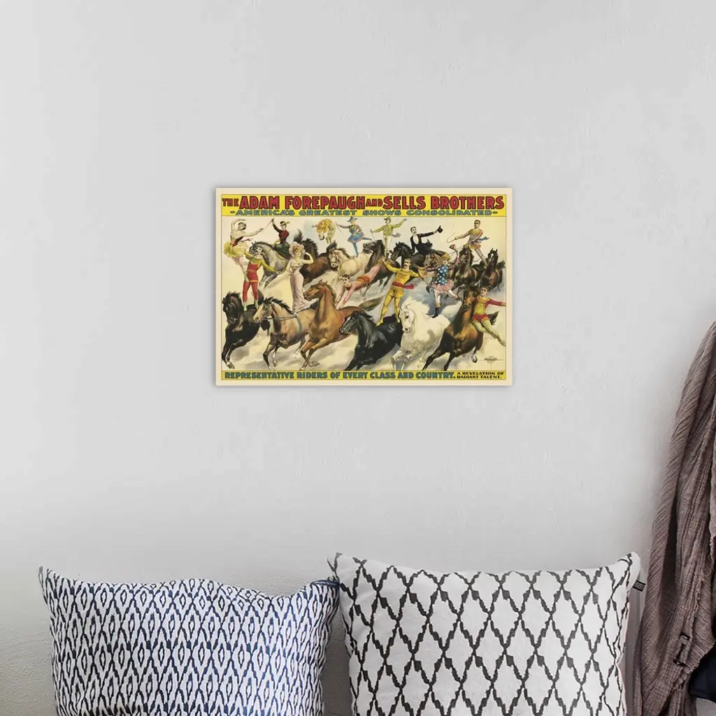 Vintage Poster Of The Adam Forepaugh And Sells Brothers Circus wall art for home and office decor. Discover canvas art prints, photos, mural, big canvas art and framed wall art in GreatBigCanvas.com's varied collections.