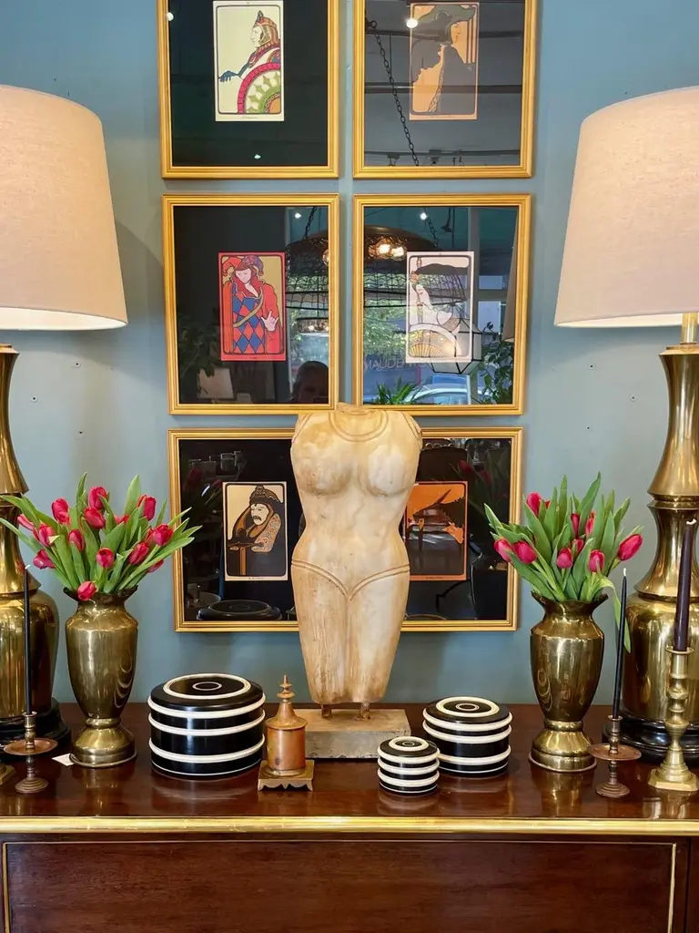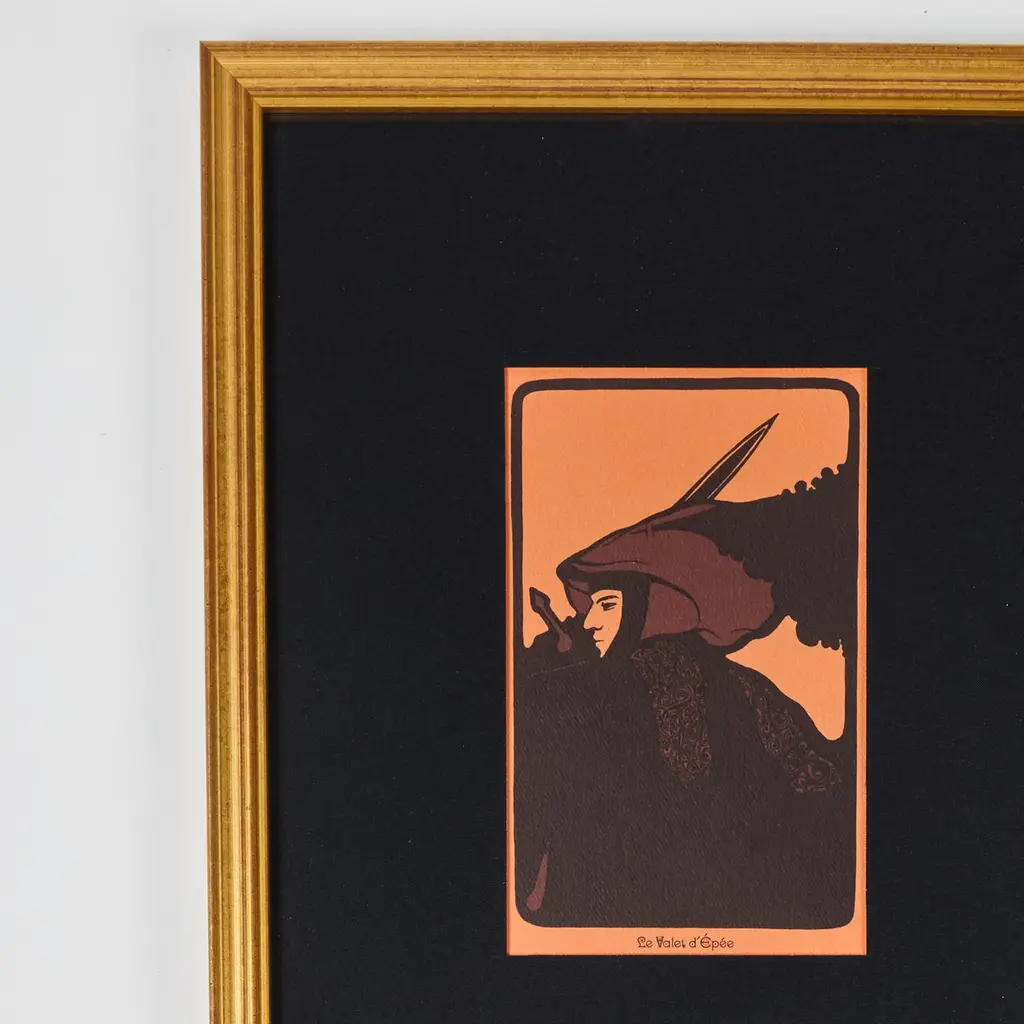 Vintage Printed Tarot Card by David Mario Palladini, c 1967 Le Valet d’ÉpéeWe love this colorful vintage printed Tarot Card c 1967 by artist David Mario Palladini (1946 - 2019). It was printed by the Linweave Paper Co., USA and has been newly framed and matted. Each piece is a vibrant pop-of-color and memorable accent to any nook or wall.13.5" x 16.5" x 1"