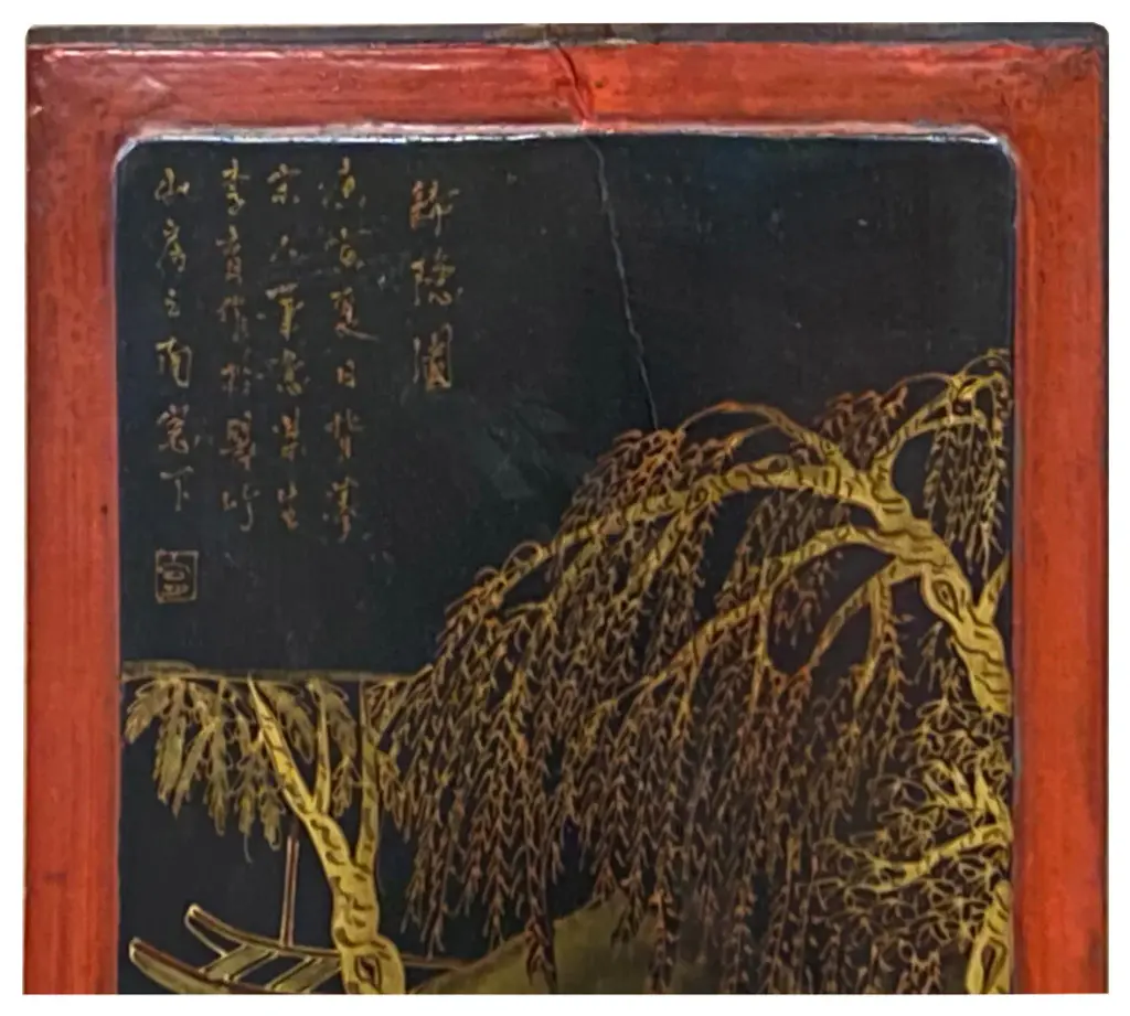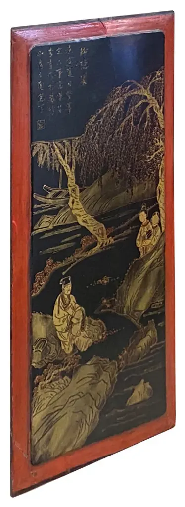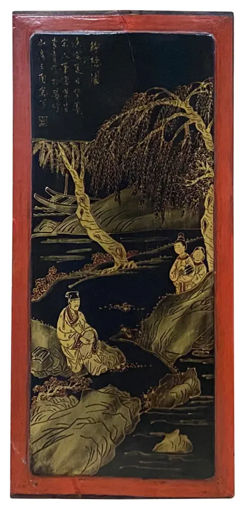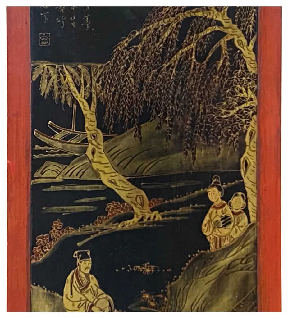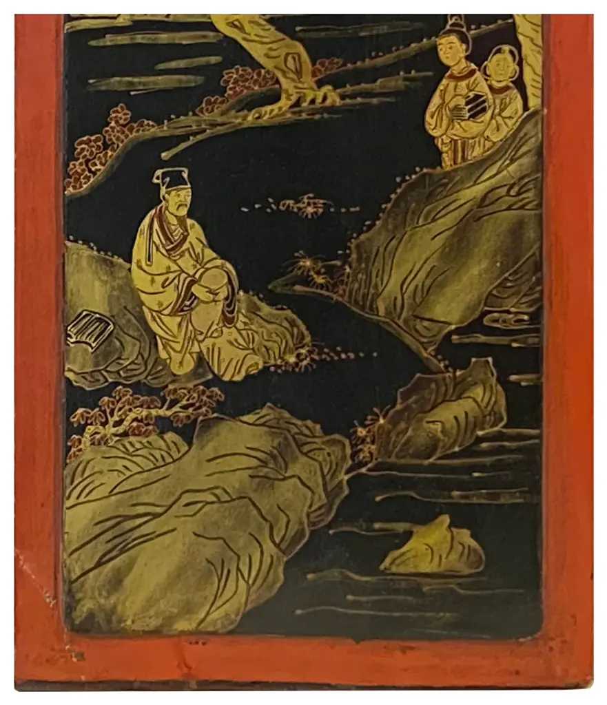 The restored wood decorative panel is a beautiful and unique piece of art. The panel is made of wood and has a black and red base color. The front of the panel is decorated with handpainted oriental Chinese scenery in golden color. The painting is intricate and detailed, and it depicts a variety of scenes, including people, buildings, and natural landscapes. The panel has been restored and is in good condition, although there are a few chip marks. The panel can be mounted on the wall, built into a room divider, or framed adding a hinge.The panel is a stunning addition to any room and would make a great gift for anyone who appreciates Chinese art or beautiful home décor. It is also a unique and personal way to add a touch of color and culture to your home.Dimensions: w11.5" x h25" +-0.5"Origin: ChinaMaterial: Elm WoodCondition: Restored, marks, repainted on the base color, minor crookedFor all USA domestic continental customers (from 48 states), there is a flat shipping fee of $50, which includes insurance and handling charges. (Additional shipping charges apply to buyers from Hawaii, Alaska, US Islands, Florida Keywest, and Canada). If you are in the San Francisco Bay Area, we warmly encourage you to take advantage of our convenient in-store pick-up option at no extra cost. Please keep all original packing material and box if damage happens.