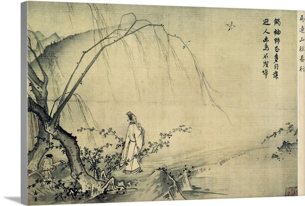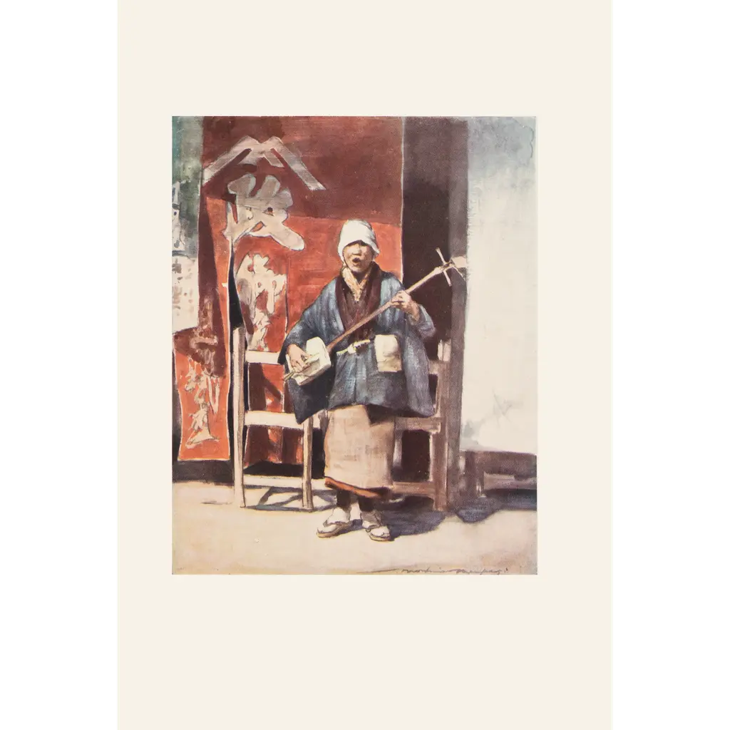 Vintage Restored Golden Oriental Scenery Graphic Wood Panel Art Hws3451