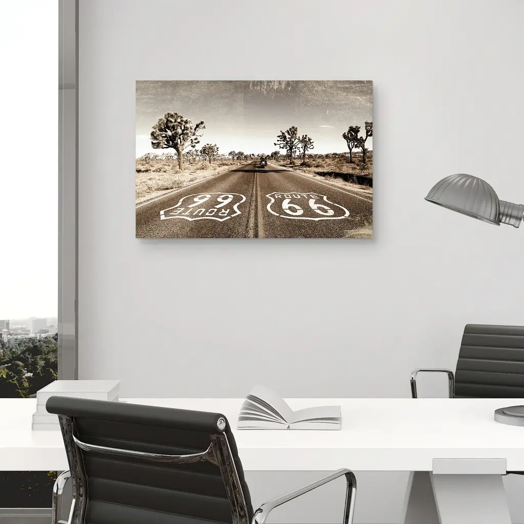Vintage Road Trip Route 66 by Belle Maison Canvas Art Print is produced with printing that covers the entirety of the canvas for a sleek and stylish museum-quality look. Our framed prints are made by expert craftsmen who strive to make each canvas the masterpiece