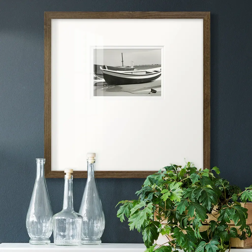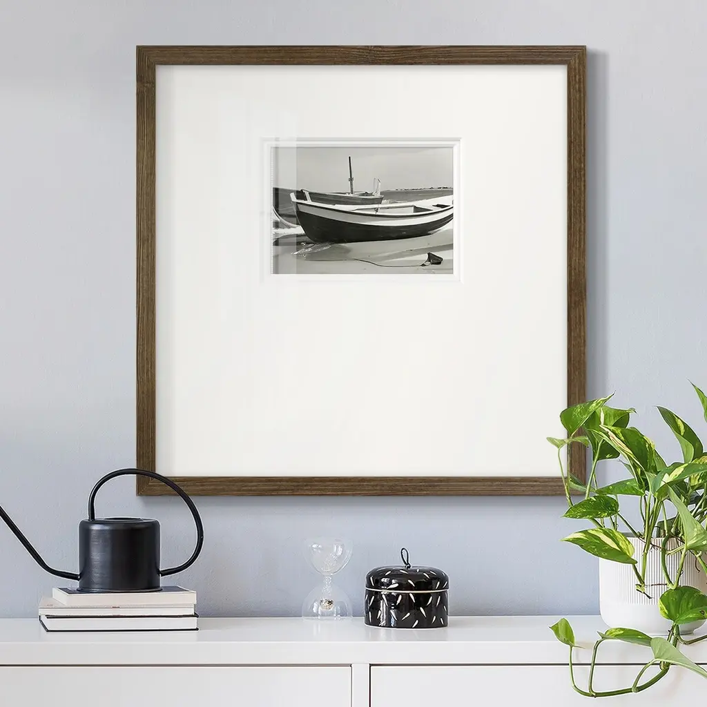 Vintage Rowboat IPremium Framed Print A framed cold pressed paper print featuring superior double matting and quality frame. 2 SIZES AVAILABLE 16''X16''' - Overall Size 20''X20''' - Overall Size Each piece is made to order. Each piece comes with hanging hardware. Made in the USA Ready to Hang Giclee Paper Print Plexiglass Beveled Matt Board Double Matte Board