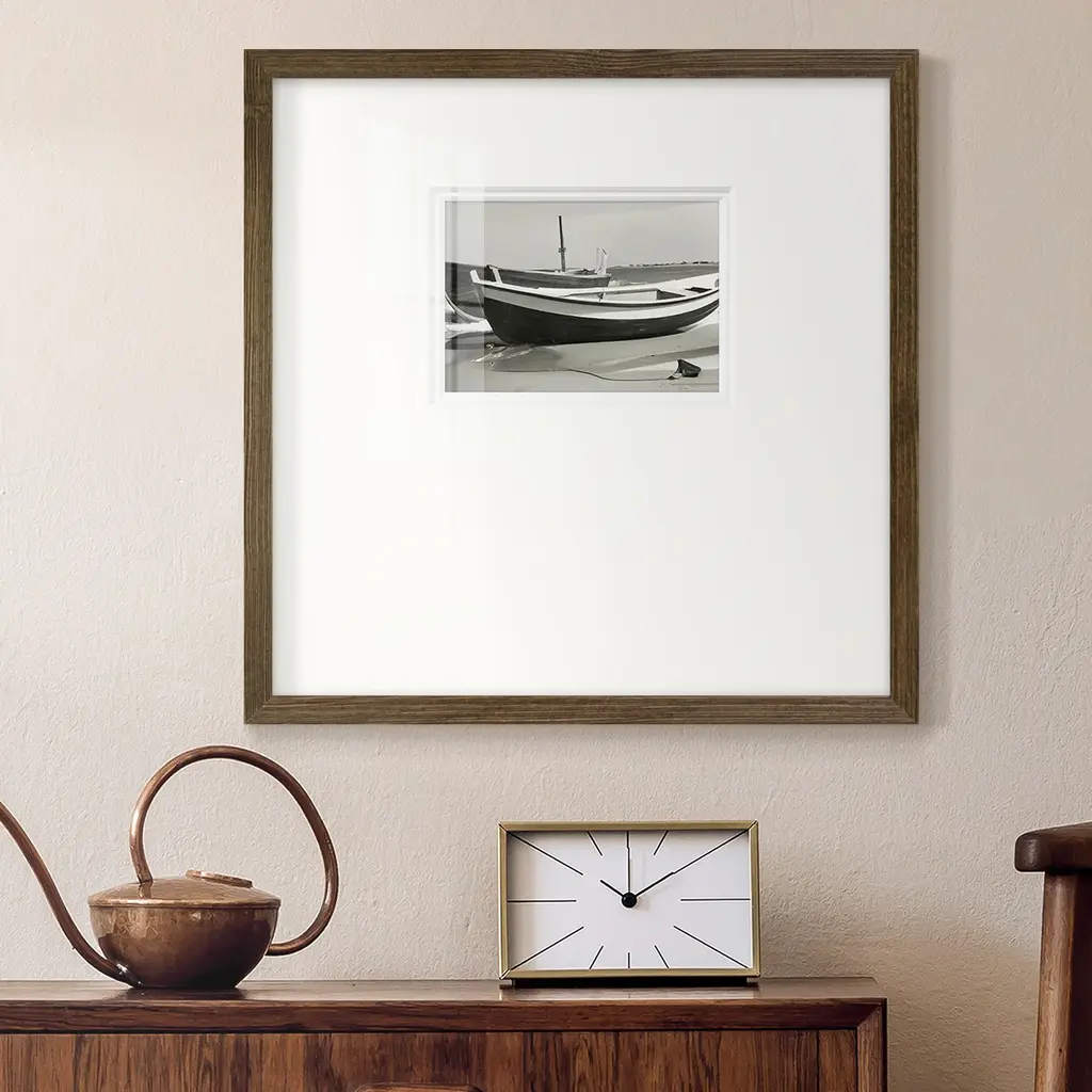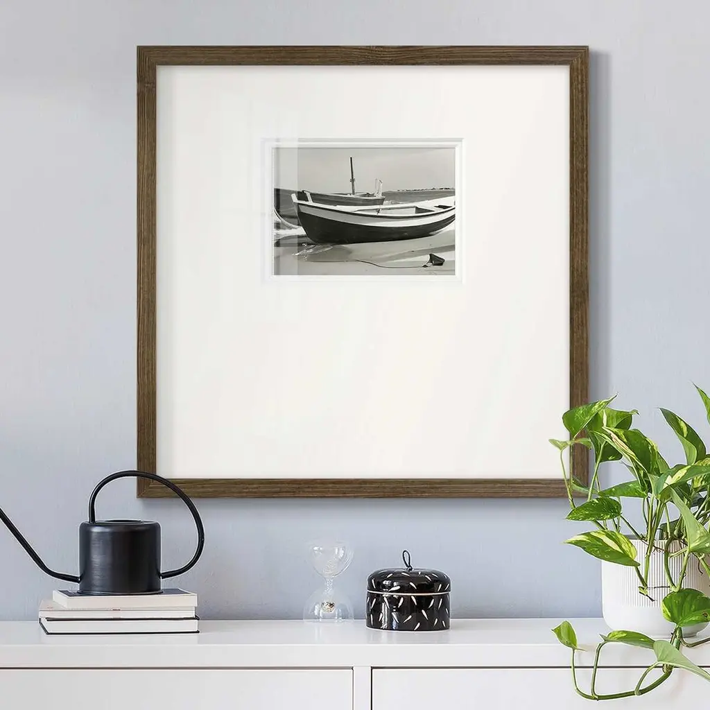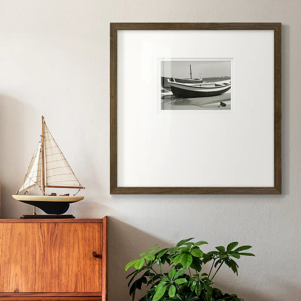 Vintage Rowboat IPremium Framed Print A framed cold pressed paper print featuring superior double matting and quality frame. 2 SIZES AVAILABLE 16''X16''' - Overall Size 20''X20''' - Overall Size Each piece is made to order. Each piece comes with hanging hardware. Made in the USA Ready to Hang Giclee Paper Print Plexiglass Beveled Matt Board Double Matte Board