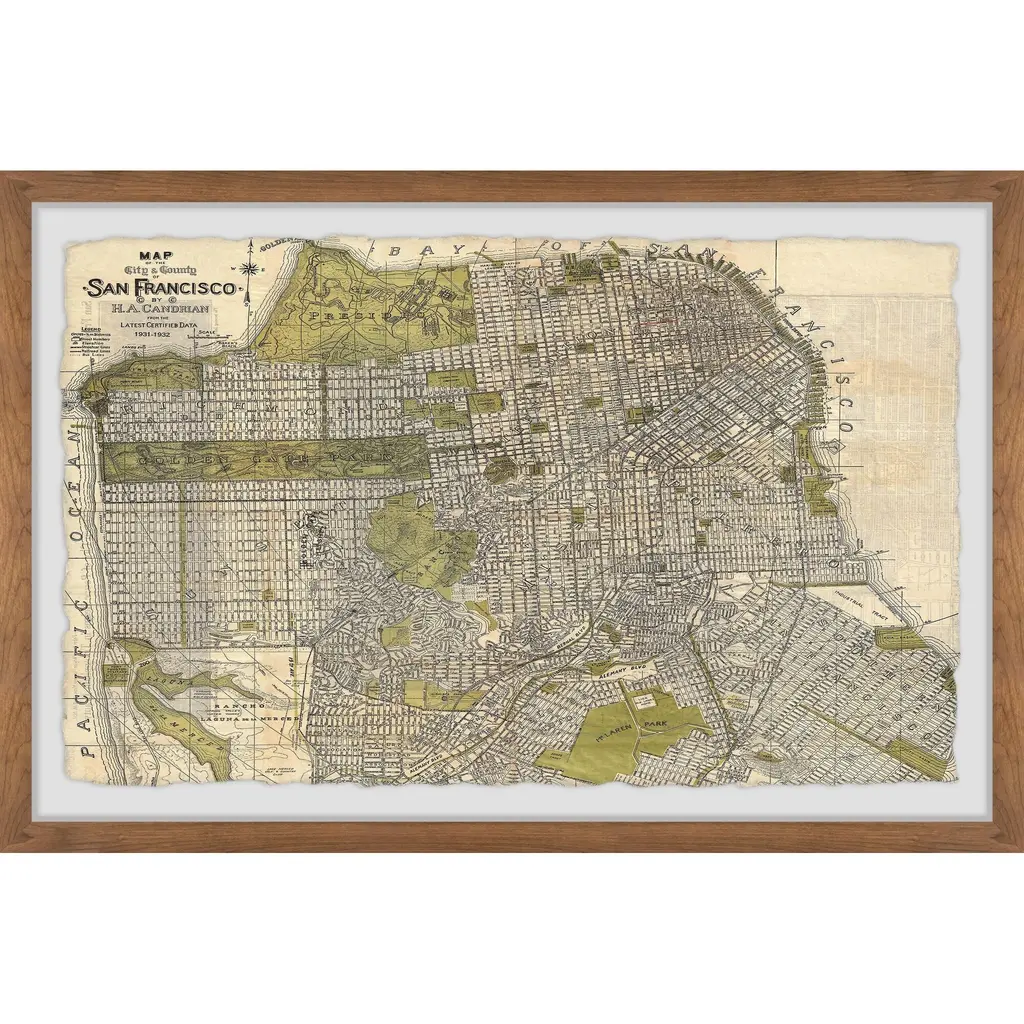'Vintage San Francisco Map' Framed Painting Print - 36 X 24