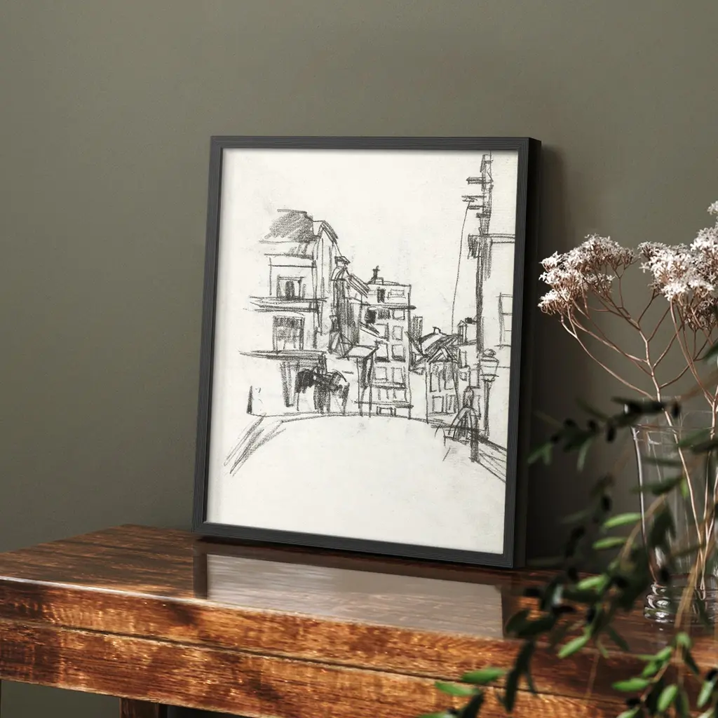 Vintage Sketch Lxxviii -Framed Print - 8X10 - Black