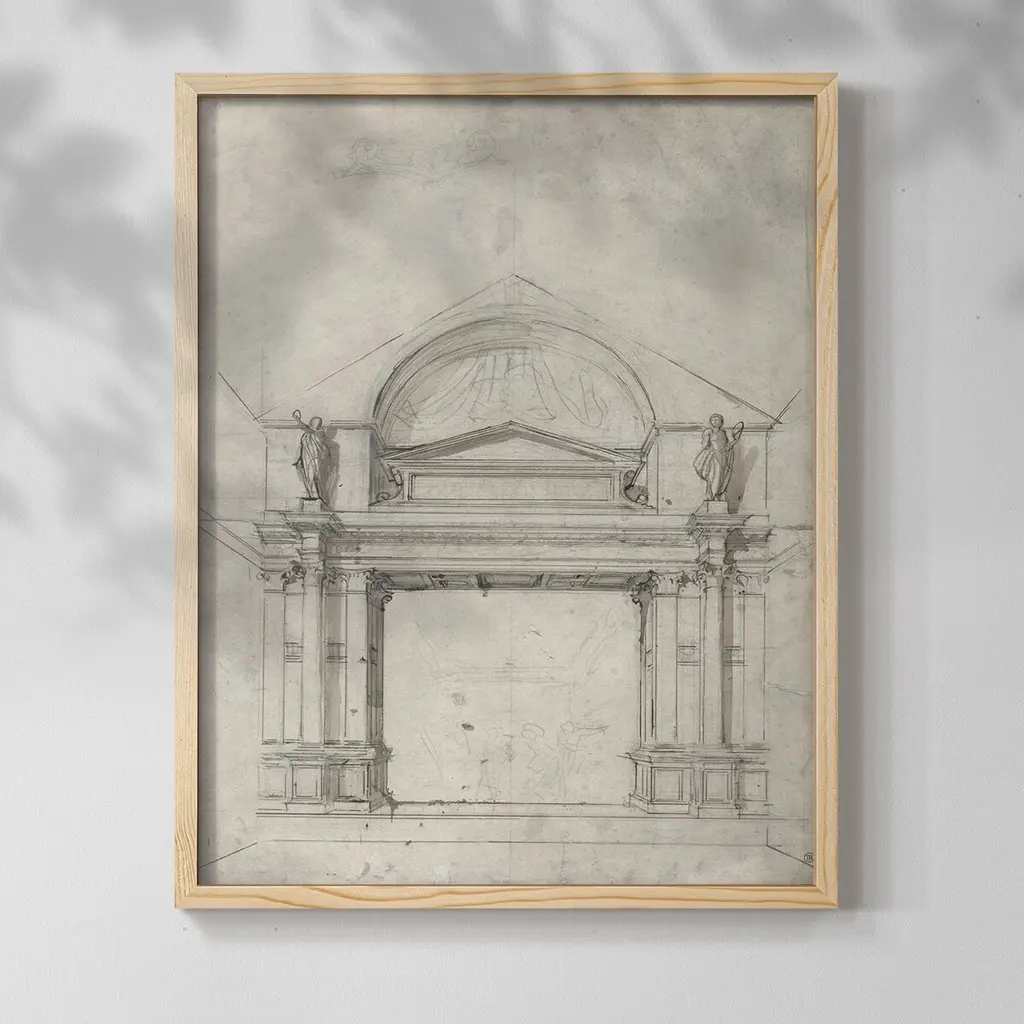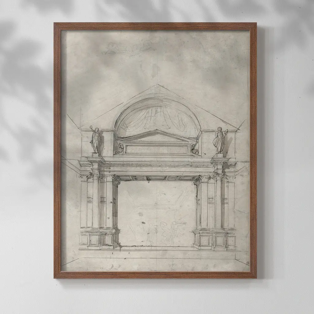Vintage Sketch Xli -Framed Print - 11x14 - Walnut