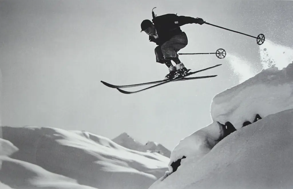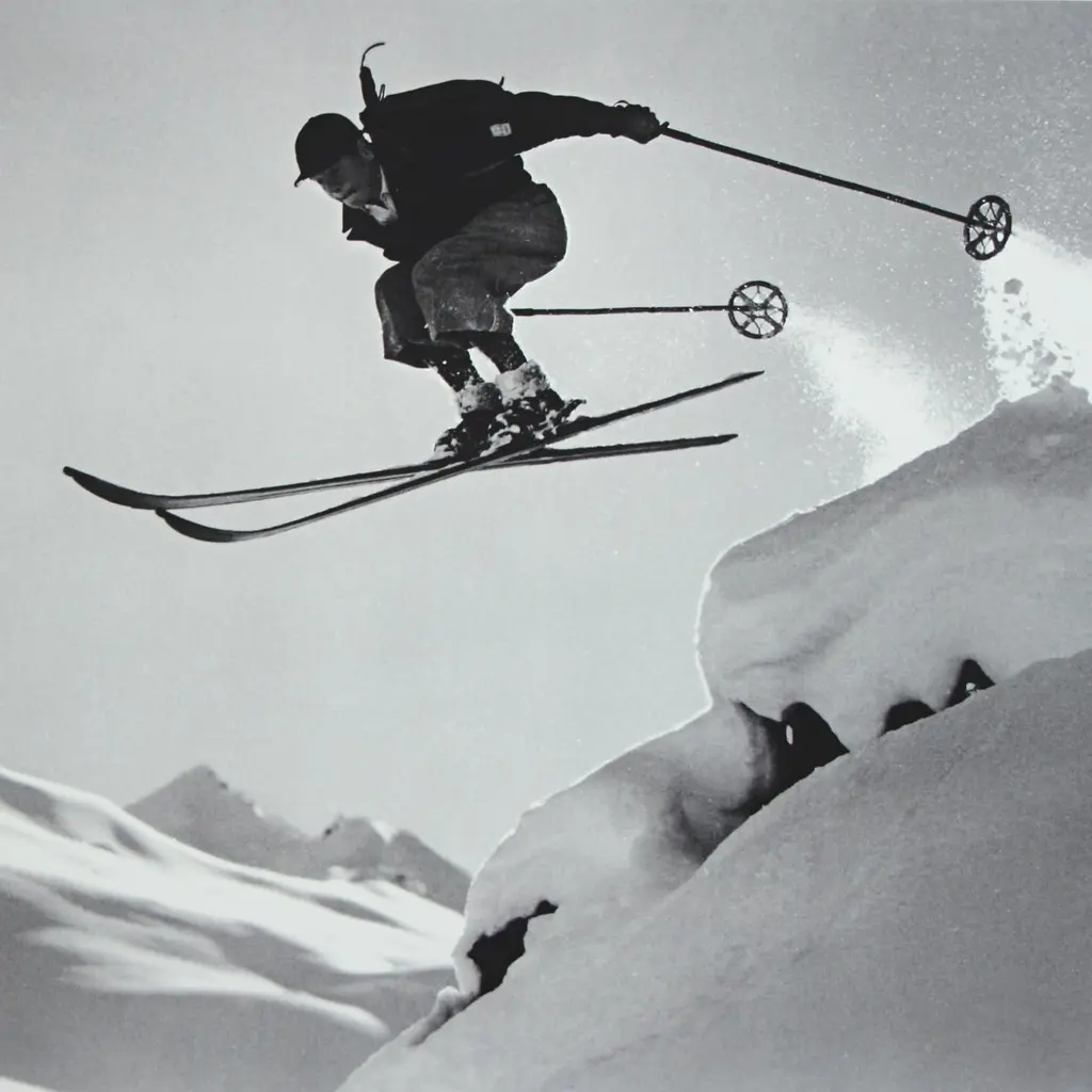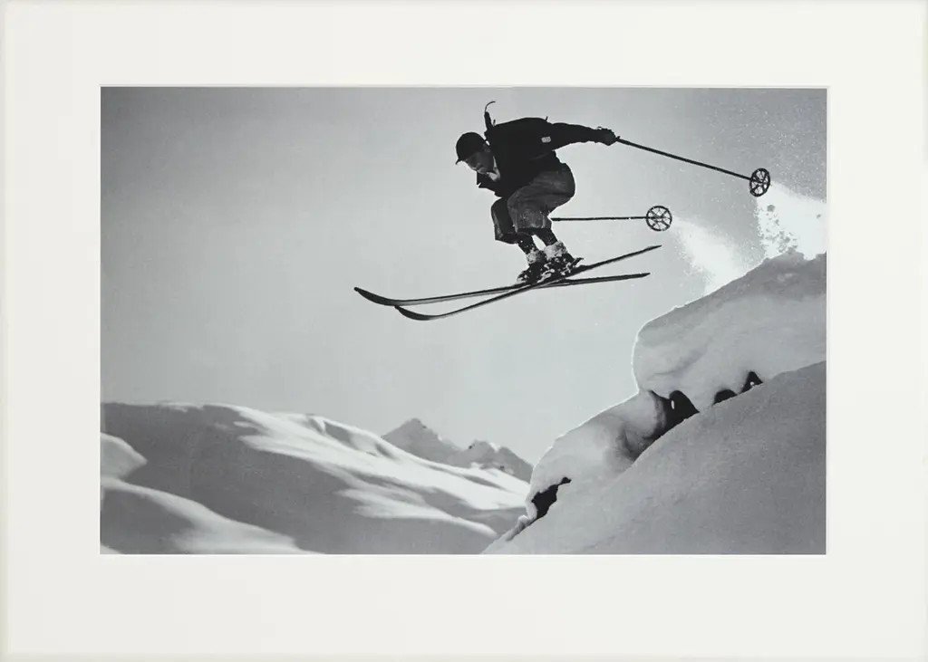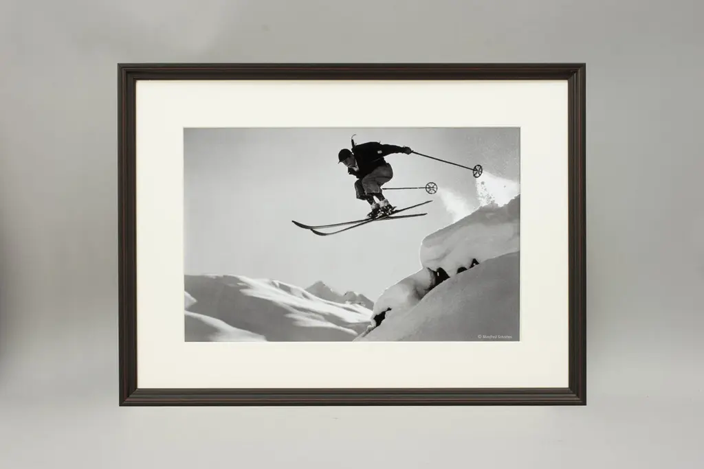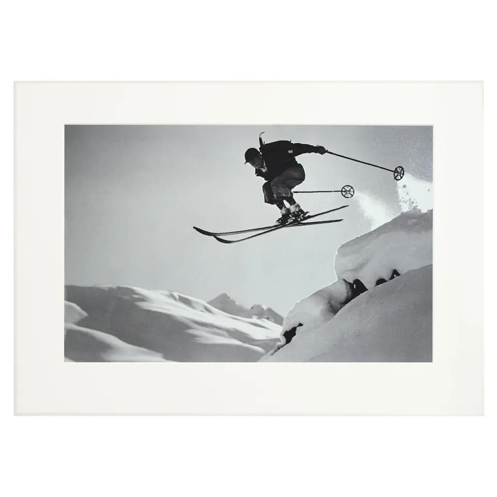Vintage Style Ski Photography, Framed Alpine Ski Photograph, Courageous Jump
