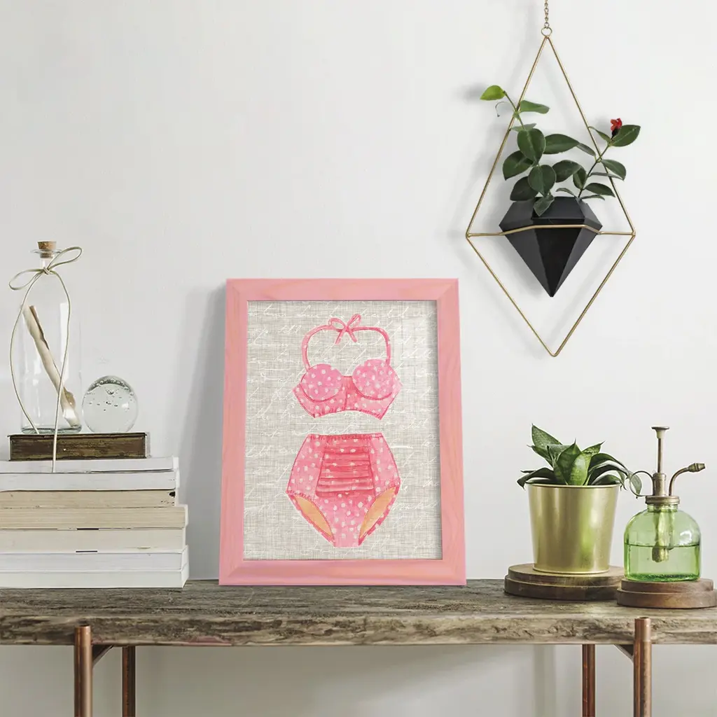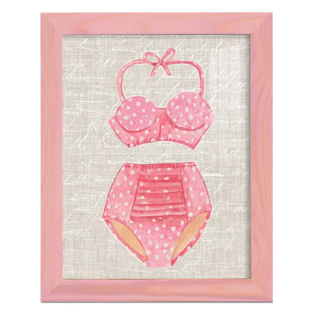 Vintage Swimming Ii -Framed Print W/glass-Cherry Red - 12x15 - Pink