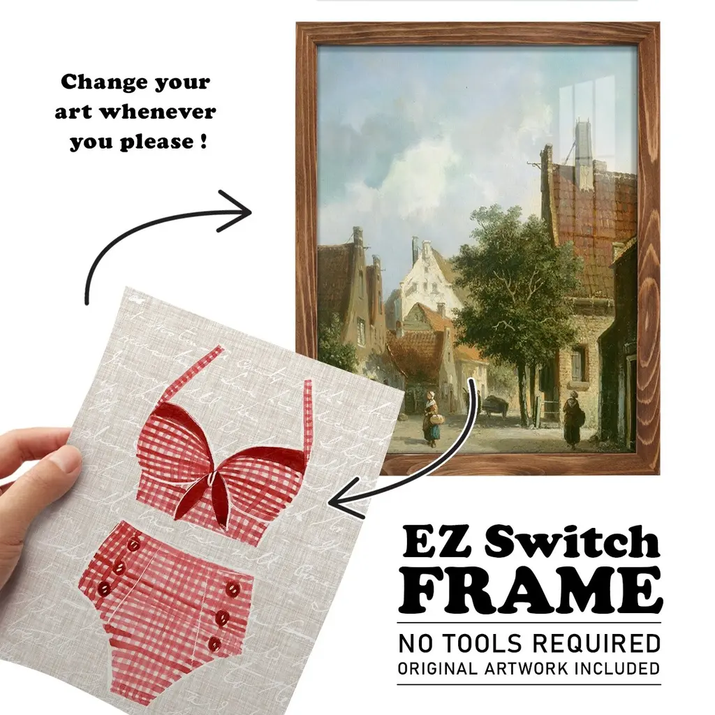 Vintage Swimming III -EZ SWITCH Framed Print w/glass-Cherry Red A delightful, framed print. Featuring a solid wood frame with real wood glass. This premium print is giclee quality. In addition, every frame features a removable back and table top stand. This allows you to change your art in the future or to just stand the art on a table for a new look. We are sure you'll enjoy our new series of EZ SWITCH Framed Art. Solid Wood Frame Real Glass Removable / Replaceable Art Built in Tabletop Stand Sizes range from 4x6 up to 12x15 - buy just one or pair them up as sets as you see fit.