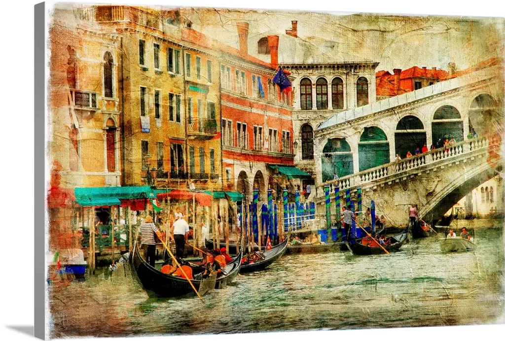 Vintage Venice, Digital Art Landscape Round Wall Art, 11"