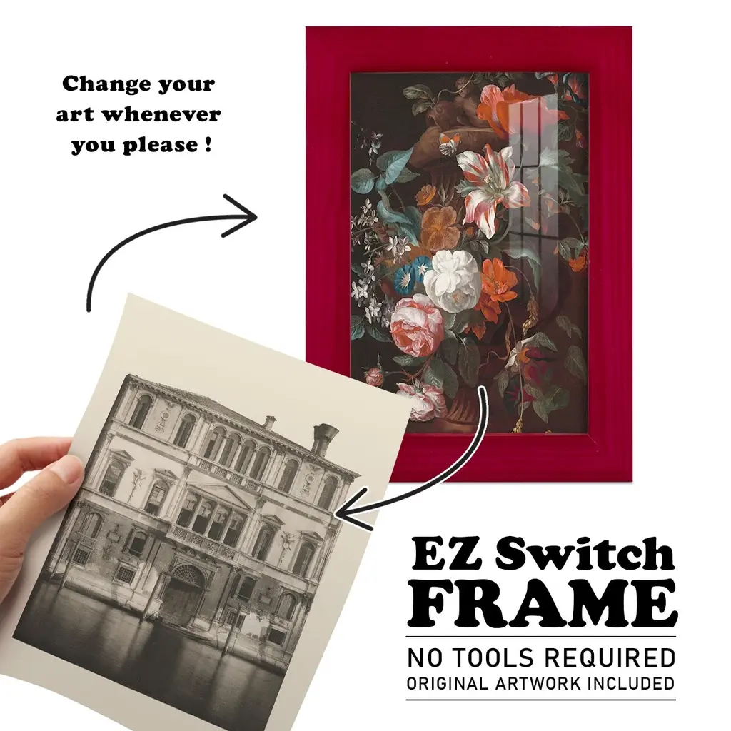 Vintage Views of Venice I -EZ SWITCH Framed Print w/glass-Cherry Red A delightful, framed print. Featuring a solid wood frame with real wood glass. This premium print is giclee quality. In addition, every frame features a removable back and table top stand. This allows you to change your art in the future or to just stand the art on a table for a new look. We are sure you'll enjoy our new series of EZ SWITCH Framed Art. Solid Wood Frame Real Glass Removable / Replaceable Art Built in Tabletop Stand Sizes range from 4x6 up to 12x15 - buy just one or pair them up as sets as you see fit.