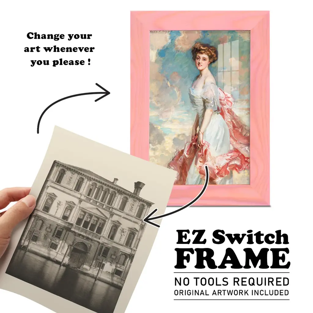 Vintage Views of Venice I -EZ SWITCH Framed Print w/glass-Cherry Red A delightful, framed print. Featuring a solid wood frame with real wood glass. This premium print is giclee quality. In addition, every frame features a removable back and table top stand. This allows you to change your art in the future or to just stand the art on a table for a new look. We are sure you'll enjoy our new series of EZ SWITCH Framed Art. Solid Wood Frame Real Glass Removable / Replaceable Art Built in Tabletop Stand Sizes range from 4x6 up to 12x15 - buy just one or pair them up as sets as you see fit.