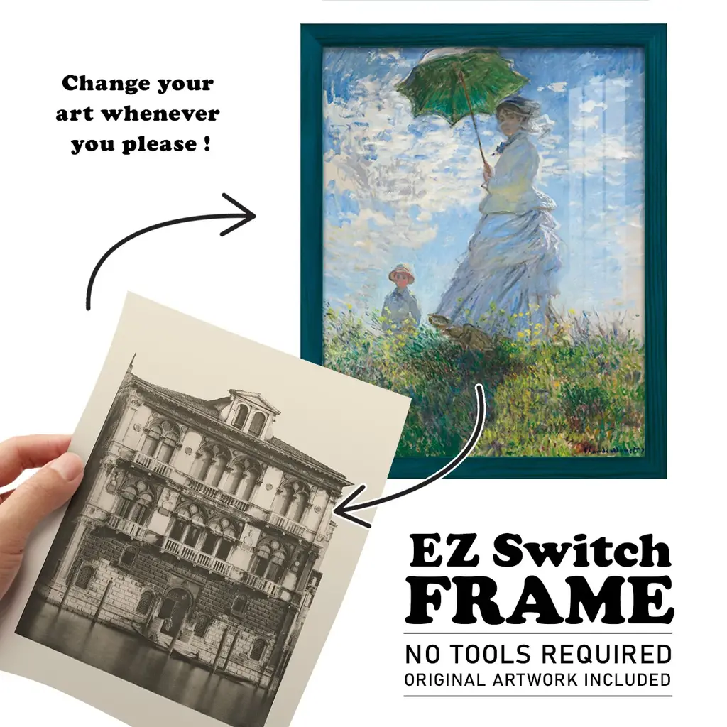 Vintage Views of Venice II -EZ SWITCH Framed Print w/glass-Cherry Red A delightful, framed print. Featuring a solid wood frame with real wood glass. This premium print is giclee quality. In addition, every frame features a removable back and table top stand. This allows you to change your art in the future or to just stand the art on a table for a new look. We are sure you'll enjoy our new series of EZ SWITCH Framed Art. Solid Wood Frame Real Glass Removable / Replaceable Art Built in Tabletop Stand Sizes range from 4x6 up to 12x15 - buy just one or pair them up as sets as you see fit.