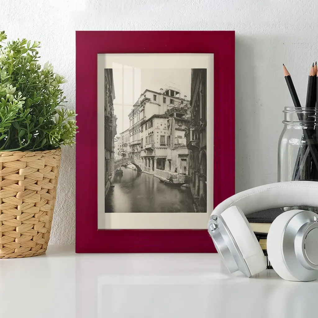 Vintage Views of Venice VI -EZ SWITCH Framed Print w/glass-Cherry Red A delightful, framed print. Featuring a solid wood frame with real wood glass. This premium print is giclee quality. In addition, every frame features a removable back and table top stand. This allows you to change your art in the future or to just stand the art on a table for a new look. We are sure you'll enjoy our new series of EZ SWITCH Framed Art. Solid Wood Frame Real Glass Removable / Replaceable Art Built in Tabletop Stand Sizes range from 4x6 up to 12x15 - buy just one or pair them up as sets as you see fit.