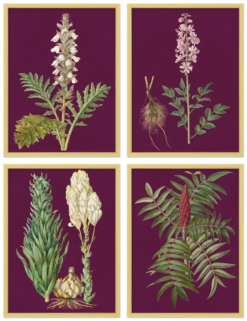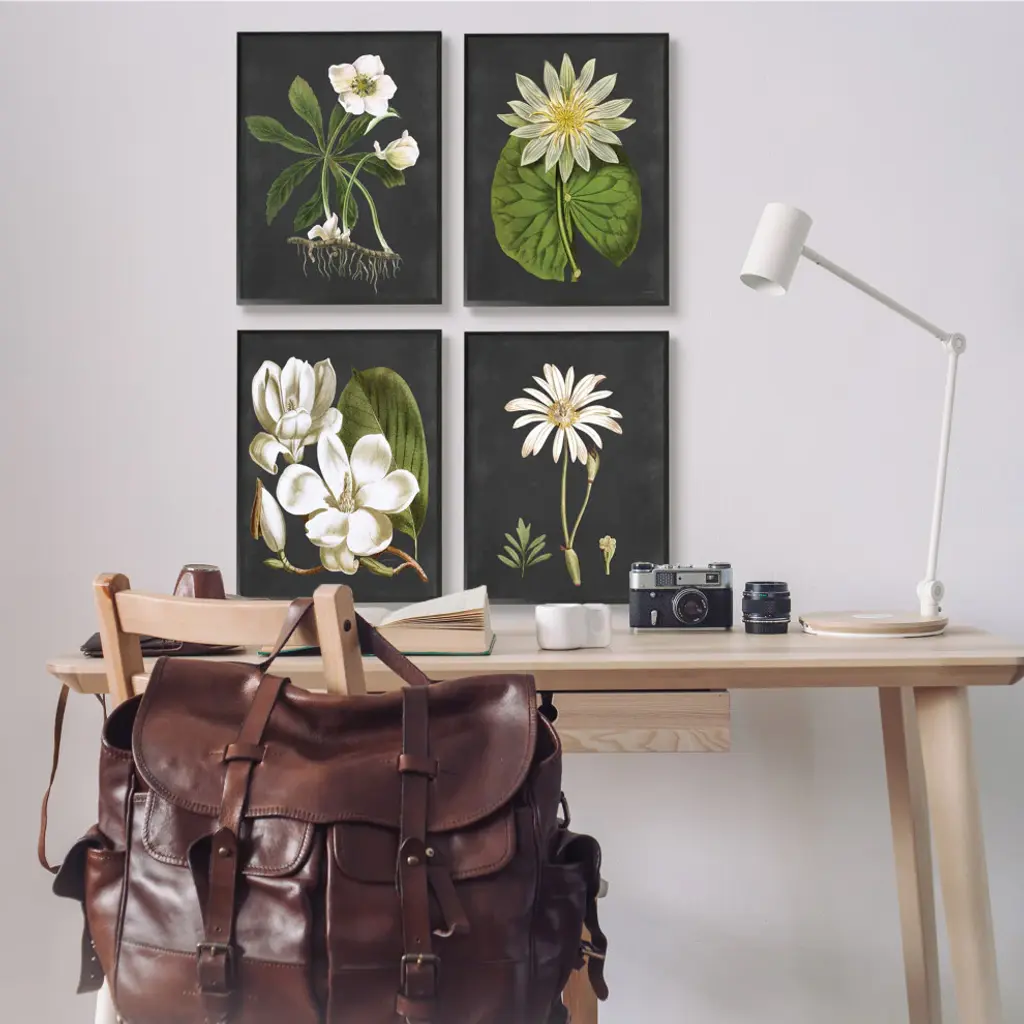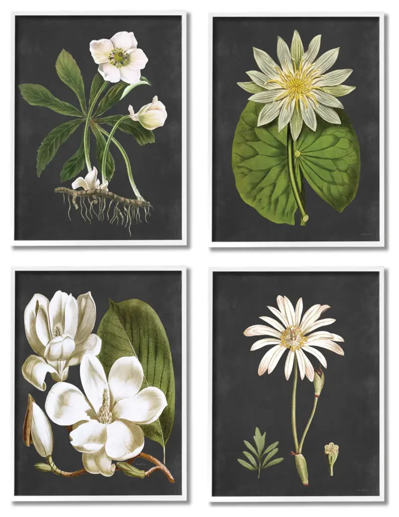 Vintage White Florals Over Distressed Grey Lotus Daisies,4pc, Each 16 X 20