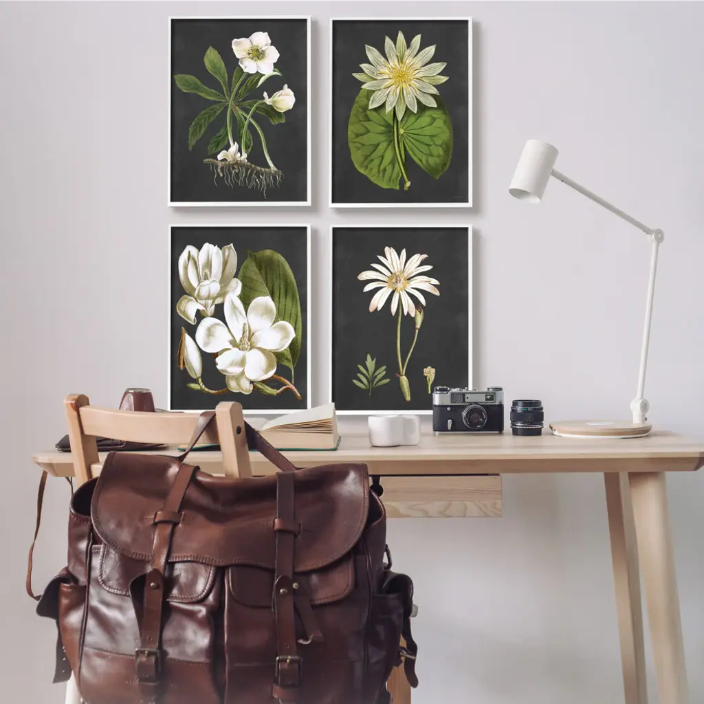 Vintage White Florals Over Distressed Grey Lotus Daisies,4pc, Each 16 X 20