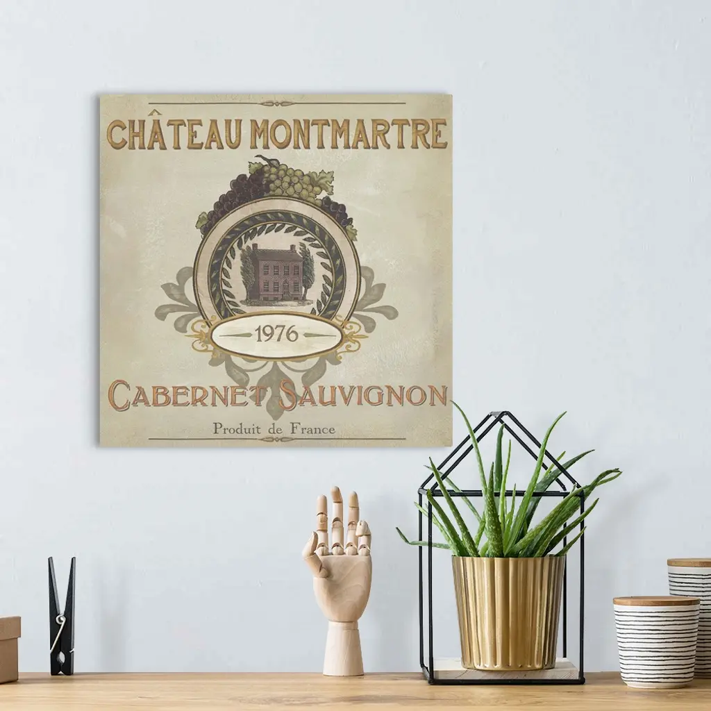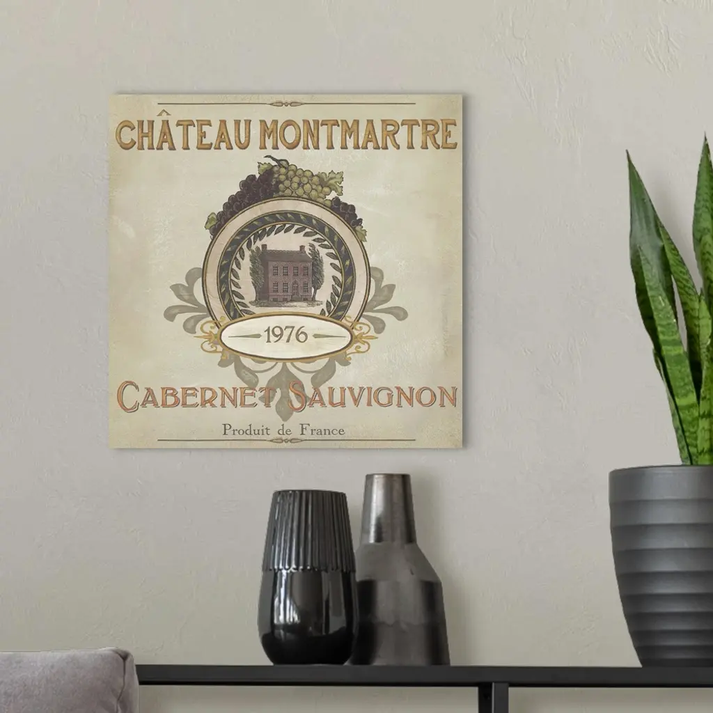 Contemporary artwork of a vintage stylized wine bottle label.