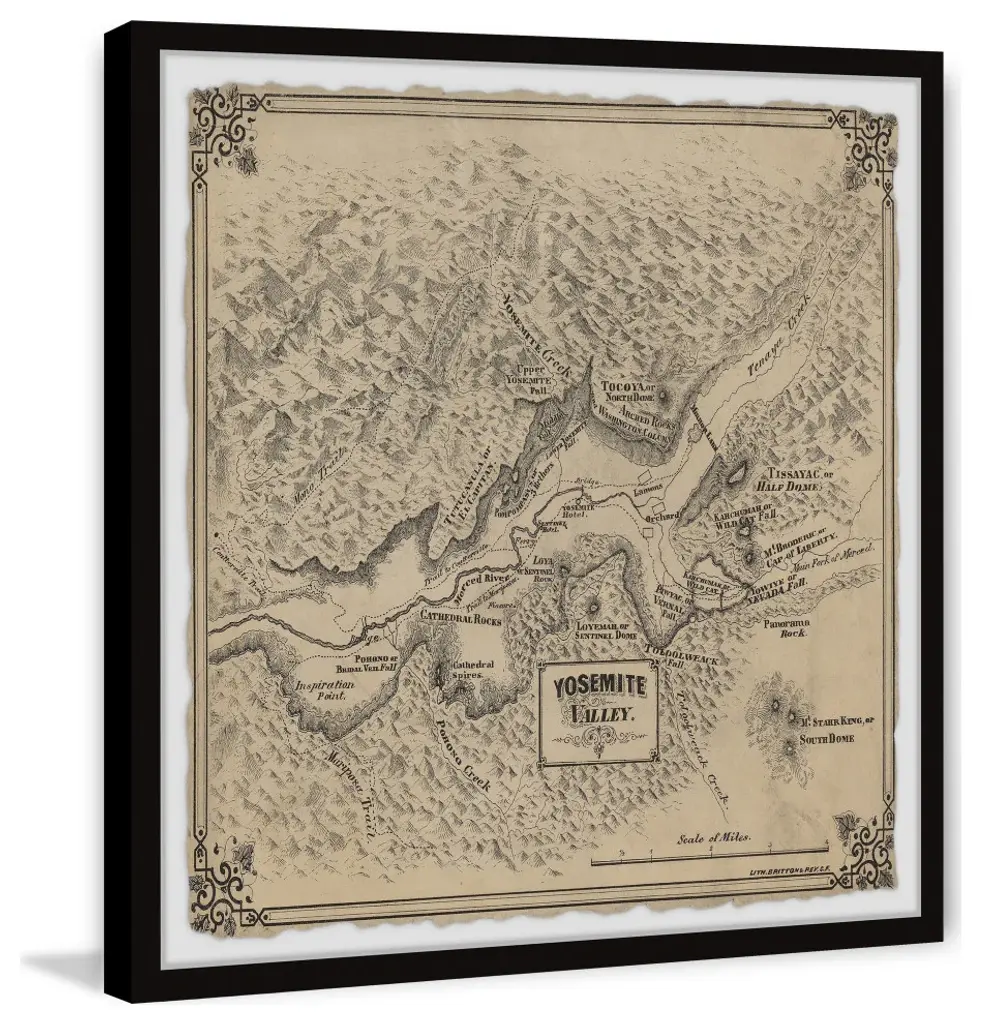 "Vintage Yosemite Valley Map" Framed Painting Print, 18x18