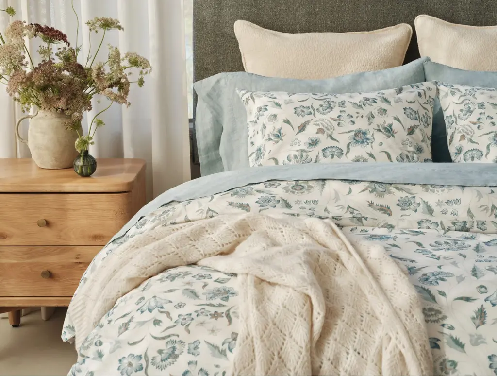 Inspired by traditional chintz woodblock textiles, the Viola Organic Print Sham features delicate floral motifs layered over a soft, dotted background. Crafted in Portugal from 100% GOTS certified organic cotton percale, it’s breathable, gentle on skin and a safer, healthier choice for your sleep space. Designed to pair seamlessly with the matching duvet, it brings an of-the-moment vintage touch to your bed.