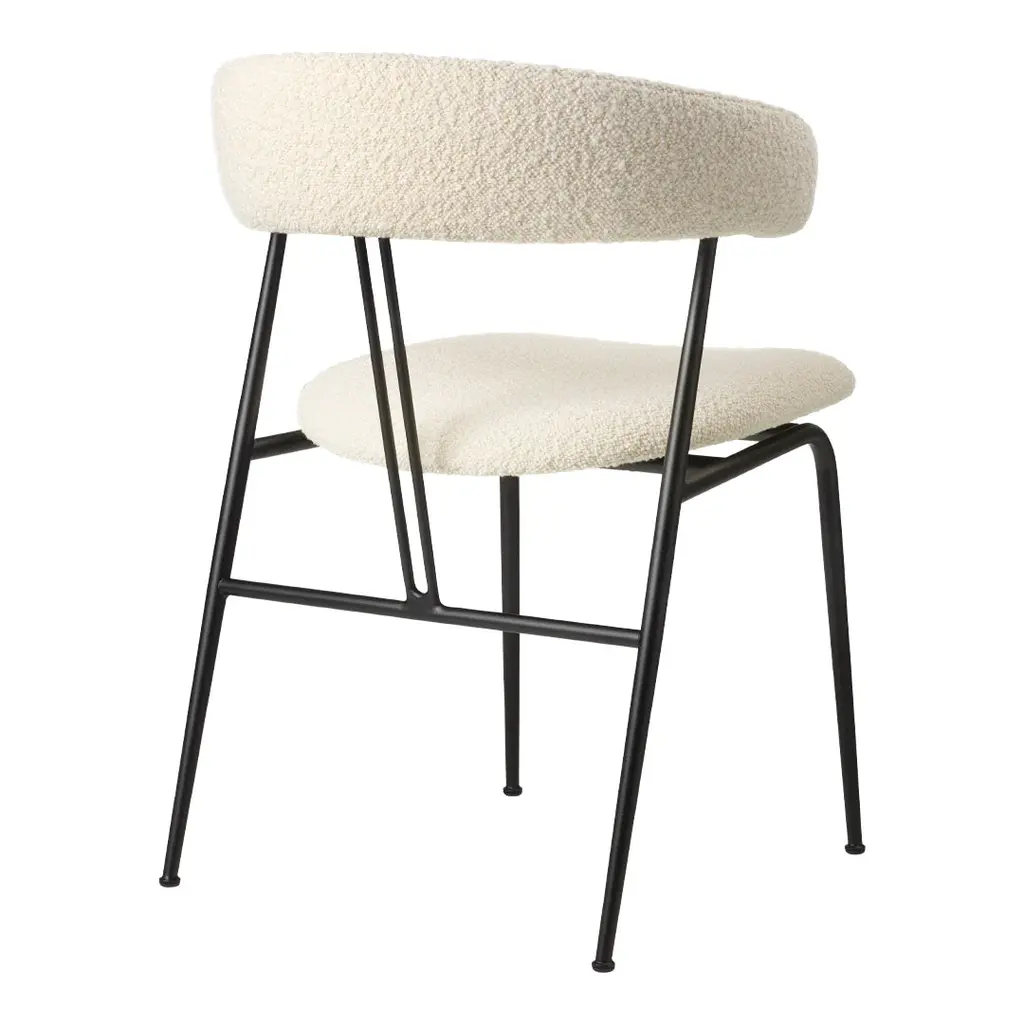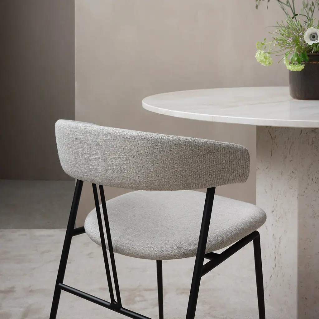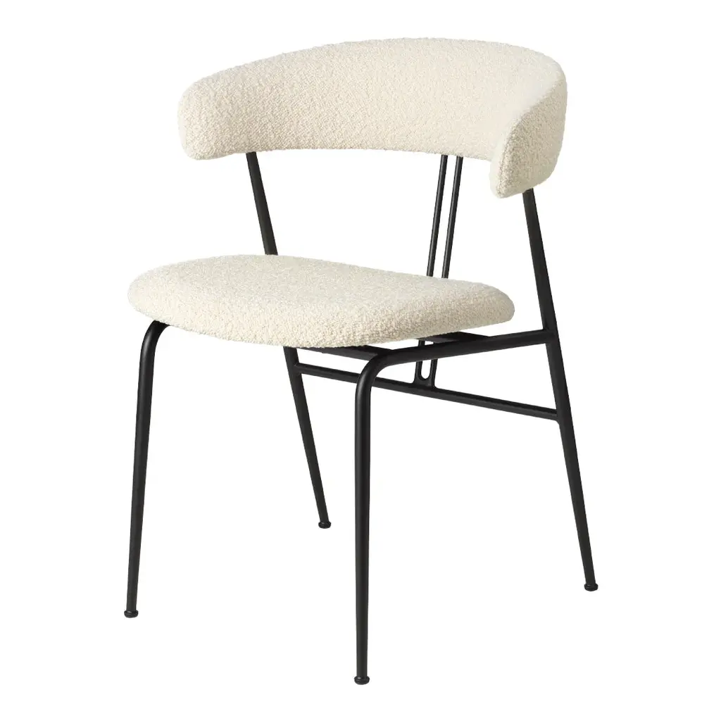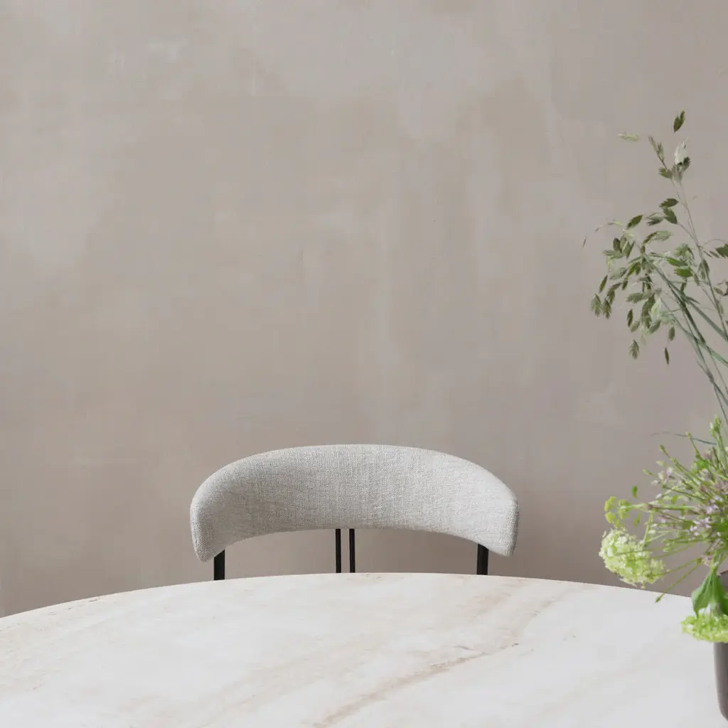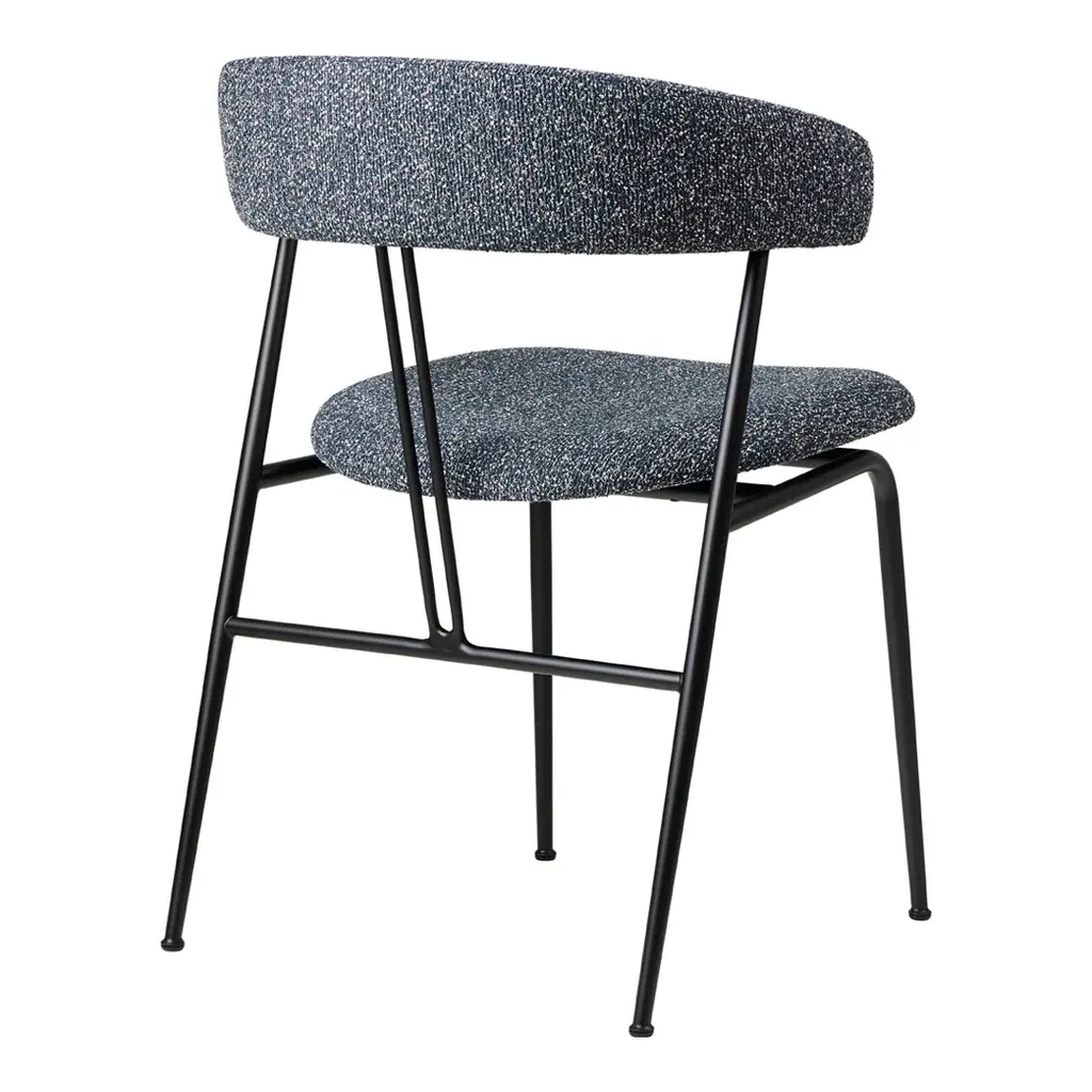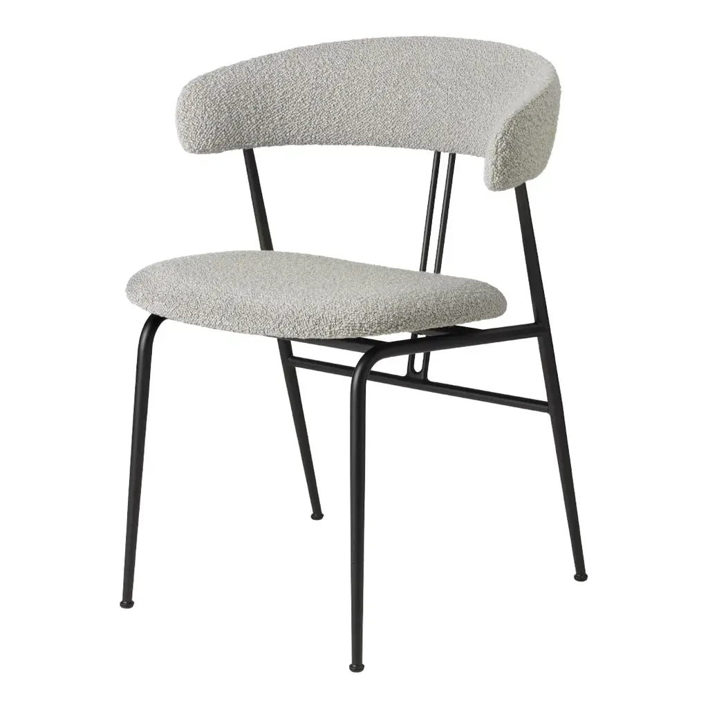 In designing the Violin Chair, GamFratesi set out to distil the archetypal form of a chair into its purest representation, without losing the sense of character for which they have become renowned. The name references the two parallel lines that extend from the backrest to a horizontal bar below the seat, evoking two parallel strings on a violin. It was these two lines, in the form of two pencil marks on the very earliest sketch, that provided the initial spark of inspiration for the design. The musicality of the name resonates with a chair that reflects a musical instrument in its geometry, symmetry and craftsmanship. Details such as the gentle curves at either side of the elegant parallel bars imbue the chair with a distinctive sense of character. The craftsmanship involved in creating this branching form, without welding for mechanical fixtures, gives the Violin Chair its decorative signature as well as providing functional support for the backrest. The Violin Chairâ€s minimalist profile, especially seen from the side where the lines cross, is an updated take on modernist geometry. Available as a fully upholstered version, and as a version with an upholstered seat and an oiled oak or walnut backrest, the Violin Chair can be dialed up or down with different upholstery options. The elegantly tapered legs of the powder-coated steel frame support a generous rounded seat and an embracing backrest that extends to partially support the forearm, elbow, or hands as an occasional armrest. This dual functionality makes the Violin Chair the perfect hybrid of dining chair and armchair. It allows you to easily twist around to speak to the person sitting next to you at dinner, while still remaining comfortable long after dessert and coffee are served.