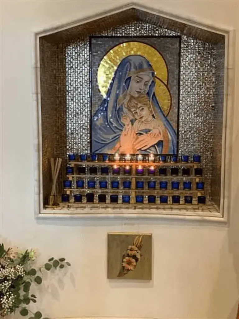 Discover the profound beauty and spiritual significance of our "Virgin Mary & Jesus - Religious Mosaic Art." This exquisite piece transforms your living space into a sanctuary of tranquility and faith. Handcrafted with care, this mosaic art piece features a heartfelt depiction of the Virgin Mary holding baby Jesus, capturing a moment of divine love and tenderness that resonates deeply with the soul.Each tile is meticulously crafted from high-quality glass and marble, ensuring that the artistry shines brightly with every ray of light. The intricate details and vibrant colors come together to create a stunning visual impact, making this artwork not only a representation of faith but also a stunning decorative piece that enhances any room’s aesthetic. Whether placed in a living room, bedroom, or prayer corner, it serves as a beautiful reminder of holiness and grace.The "Virgin Mary & Jesus - Religious Mosaic Art" is more than just a piece of art; it is a timeless treasure that invites serenity and reflection into your life. It makes a meaningful gift for religious milestones, such as baptisms, confirmations, or housewarming celebrations. Each time you gaze upon this masterpiece, you're reminded of the love and protection bestowed upon us by the Holy Mother and her Son.Elegantly designed to fit seamlessly into any decor style, this mosaic art can be a focal point above a mantel, an inspiring addition to a gallery wall, or a serene accent in a personal prayer space. Let this beautiful depiction of the Virgin Mary and baby Jesus bring peace, warmth, and a sense of spiritual connection into your home.Invite the timeless essence of faith into your life with this stunning piece of religious art. Perfect for both collectors of religious artifacts and those seeking to enhance their spiritual journey, this handcrafted mosaic is a celebration of love, devotion, and artistry that will be cherished for generations to come. Elevate your space and nurture your soul with the "Virgin Mary & Jesus - Religious Mosaic Art."