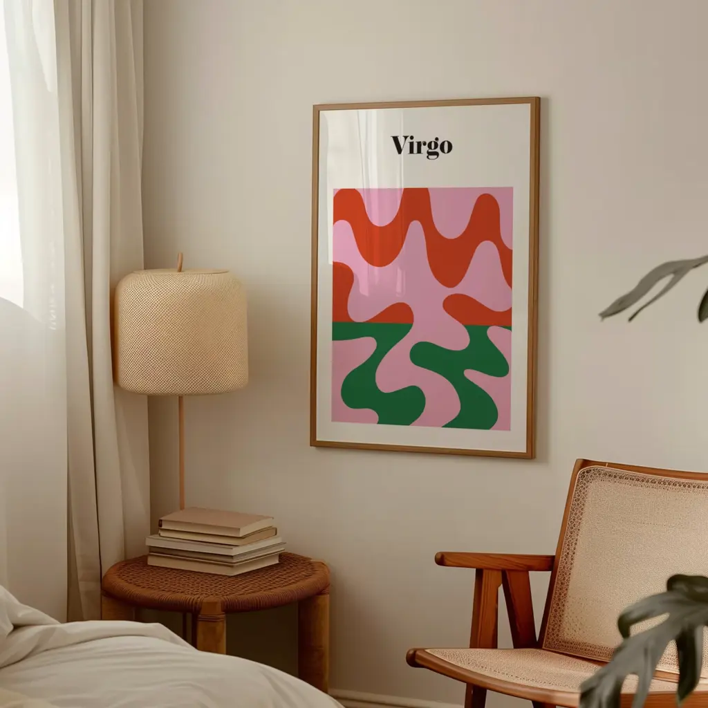 Virgo Zodiac Star Sign retro inspired Art PrintPersonalise your space with our Retro Inspired Zodiac Prints. Makes the perfect gift!Sold without frameGiclée printed on Munken pure smooth cream paper which is certified by the Rainforest Alliance Program for FSC® Standards.