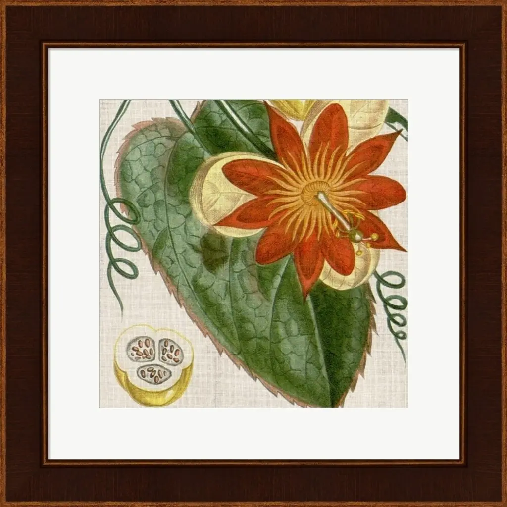 Cropped Turpin Tropicals IV by Vision Studio is a high quality piece of framed artwork. The finished size of this piece is 22.5" X 22.5". It has a Walnut Dark Brown with Antique Bronze Edges frame, is single matted and finished with high quality Acrylic Plexiglass.