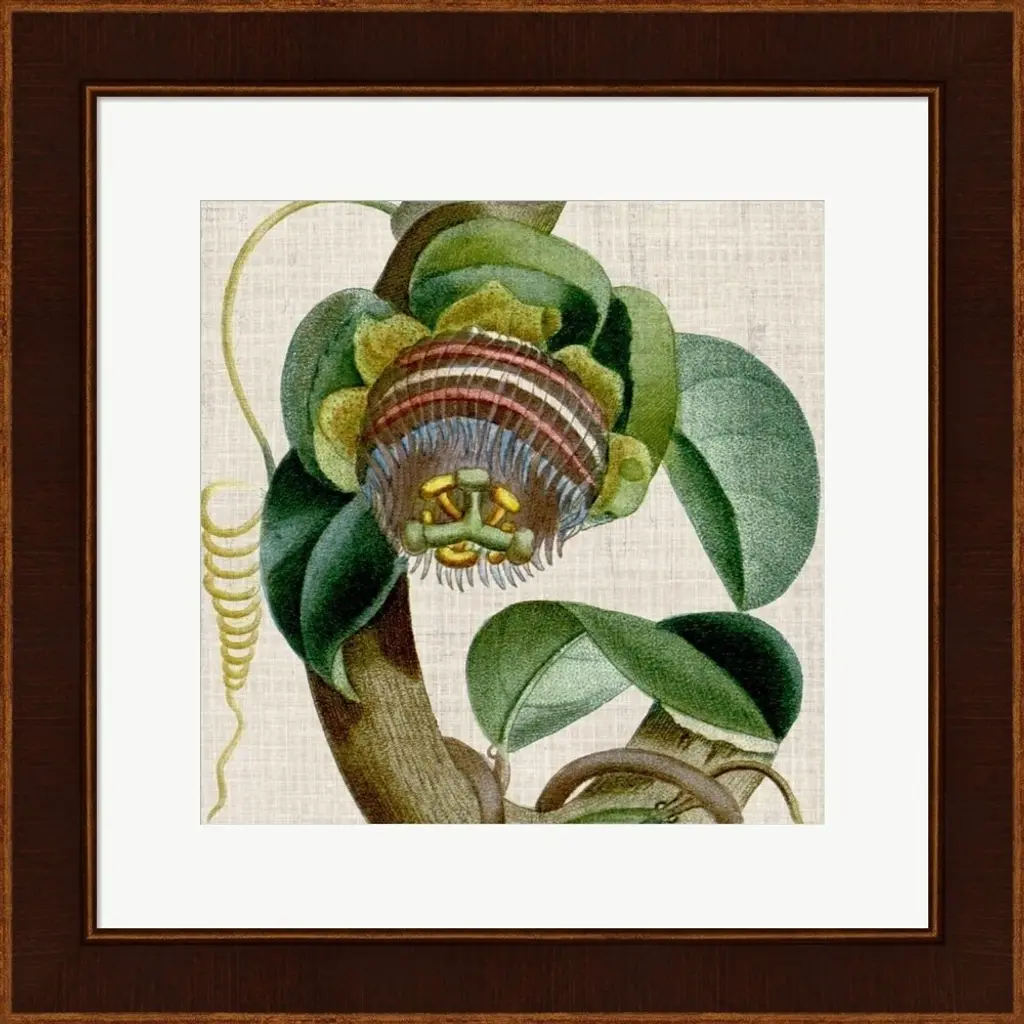 Cropped Turpin Tropicals IX by Vision Studio is a high quality piece of framed artwork. The finished size of this piece is 22.5" X 22.5". It has a Walnut Dark Brown with Antique Bronze Edges frame, is single matted and finished with high quality Acrylic Plexiglass.