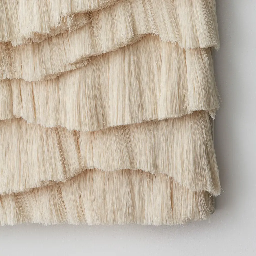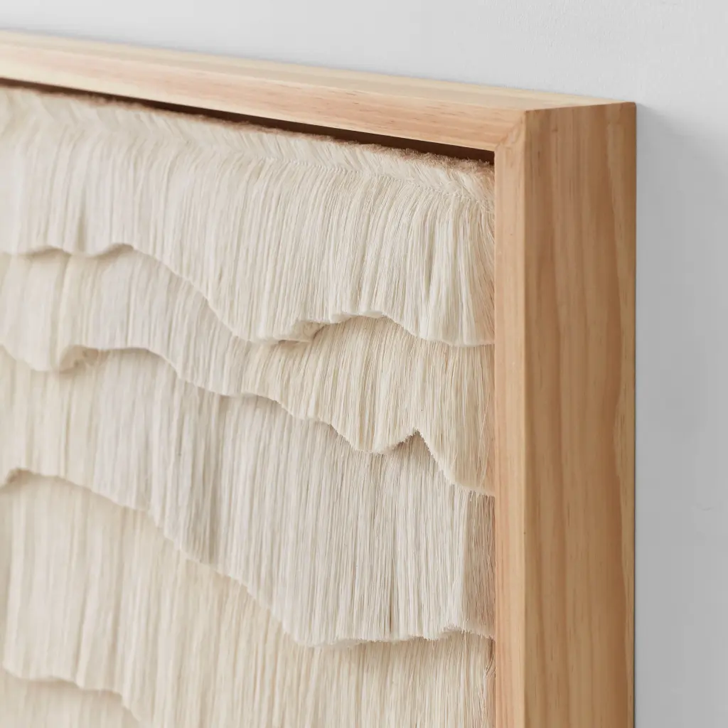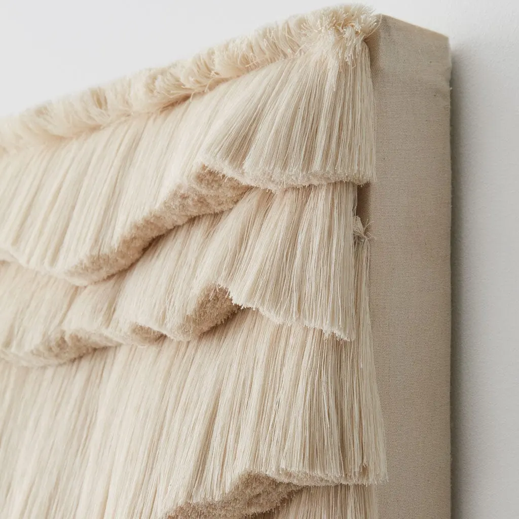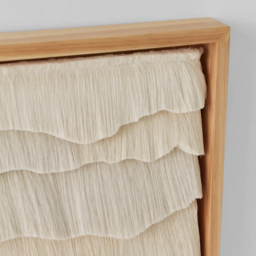 Textural and totally unique, this one-of-a-kind wall hanging is crafted from 100% upcycled cotton threads. Organic textures. Effortless style. A statement piece like no other, this one-of-a-kind wall hanging is made by upcycling pieces of cotton thread from other pieces, including our Lomas Wall Hanging, reducing waste to create something beautiful. Available in portrait or landscape orientation with hardware included to hang, this piece makes a stunning addition to your entryway or anywhere you want to add a bit of texture. Crafted by a group of 11 artisans in Queretaro, Mexico, each piece takes up to a day to complete. Made start-to-finish in a fair trade working environment.