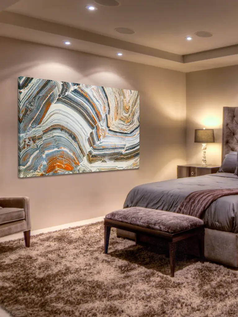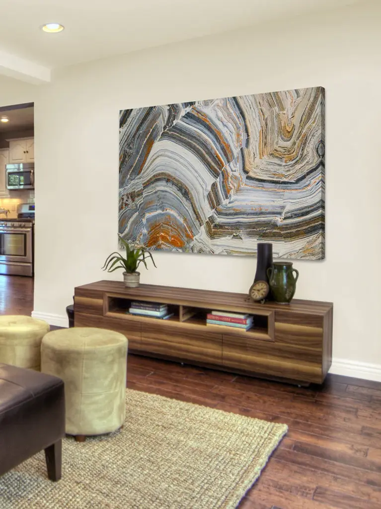 The 45-by-30-centimetre "Visual Conception of Creation" Canvas Print is an abstract work that has an organic feel. Geologic lines of blue, orange, grey and white create enticing layers. Spearheaded by Parvez Taj, Marmont Hill is a collective of artists whose original, limited edition creations are handcrafted with love and care. Hand-stretched canvas wrapped on sustainable, non-warping woodArrives ready to hangCertificate of authenticity included